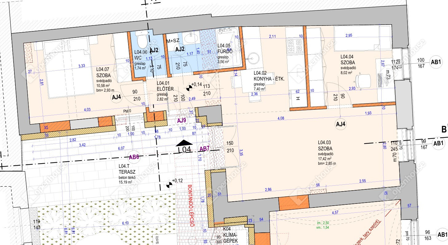 | Nappali | 17.42 m2 | Burkolat nélküli |