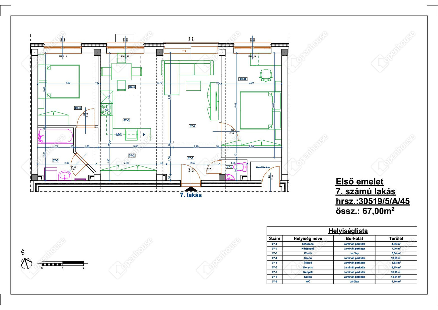 | Közlekedő | 7.00 m2 | Laminált padló |