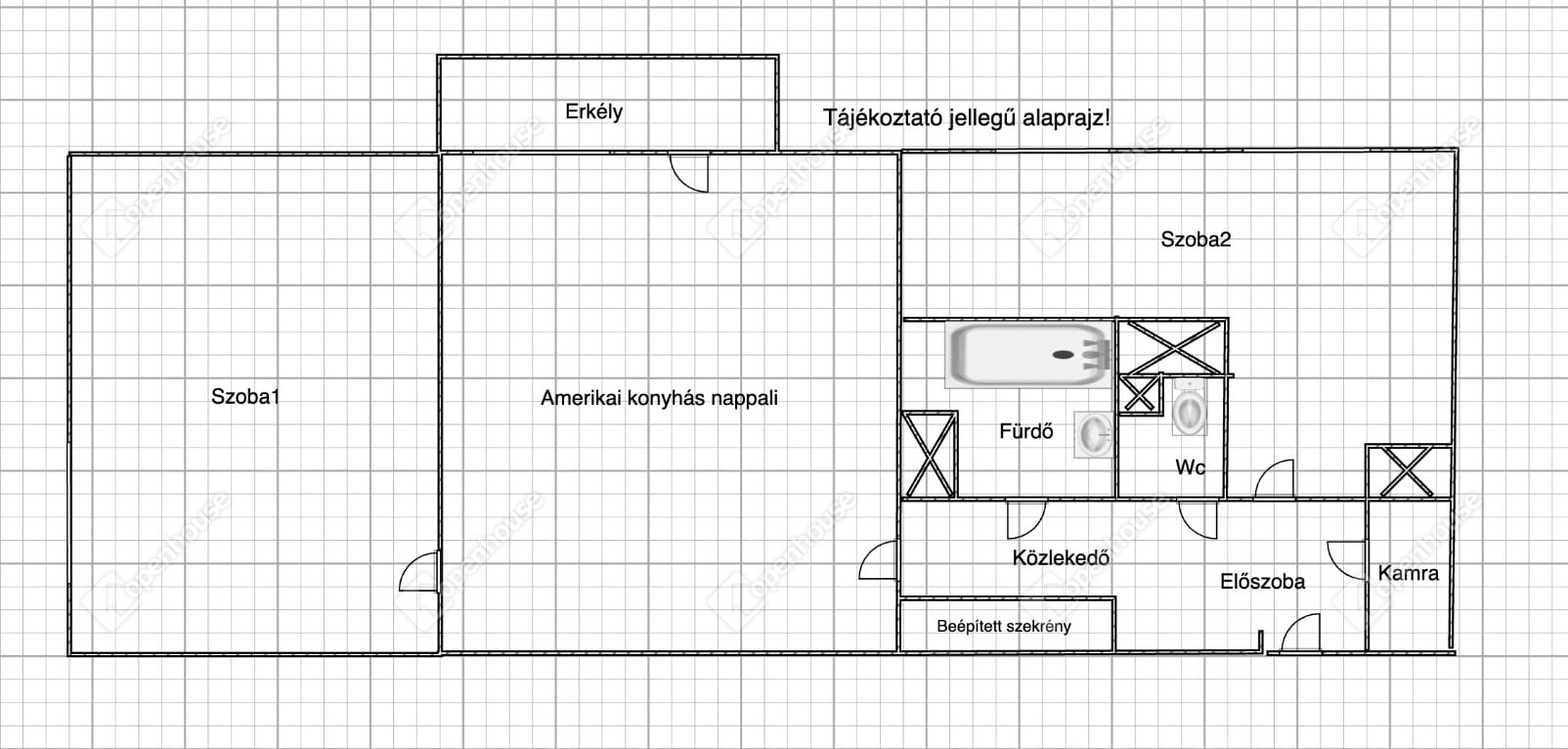 2 külön nyíló szoba + amerikai konyhás nappali