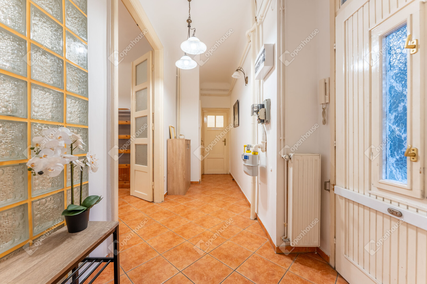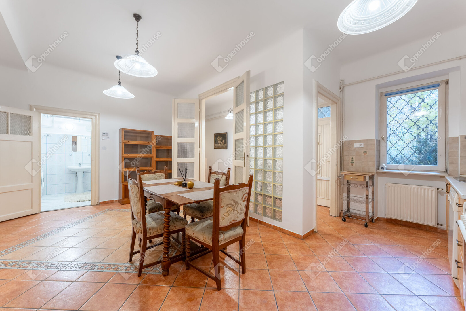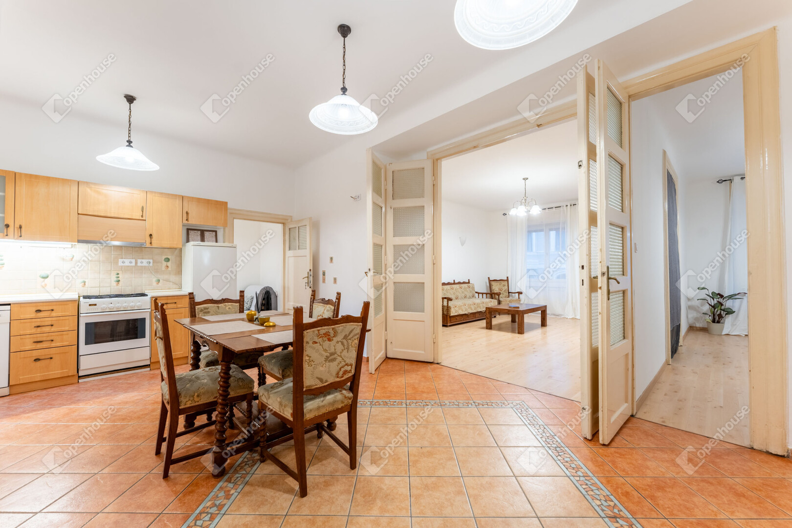 Polgári belmagassága, a nagyvonalú beltéri ajtók és a nyugati tájolásból érkező délutáni fény együttese harmonikus, könnyed atmoszférát hoz létre.