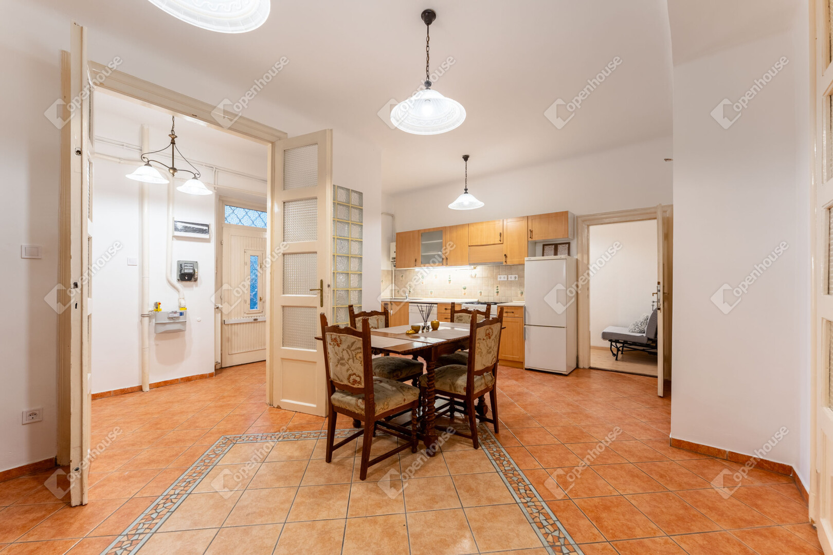 Jelenleg egy utólag beépített, szigetelő funkciójú panel zárja le az eredeti enfilade jellegű térsort, azonban mivel ez nem tartószerkezeti elem, igény esetén könnyedén eltávolítható így a klasszikus, átlátható térkapcsolat egyszerűen visszaállítható.