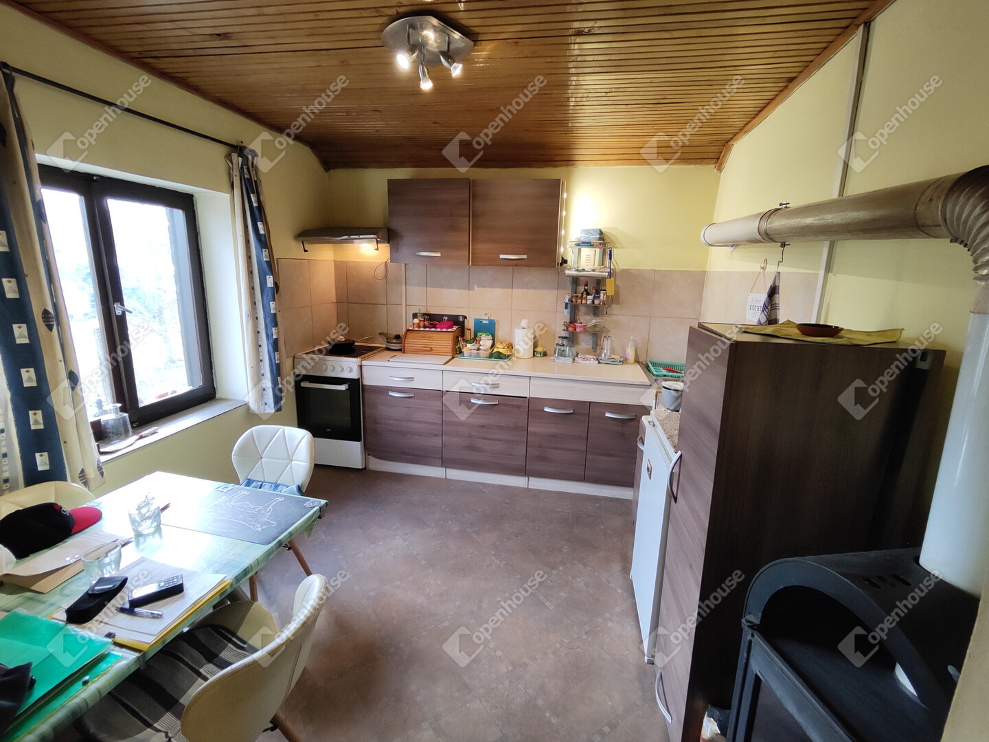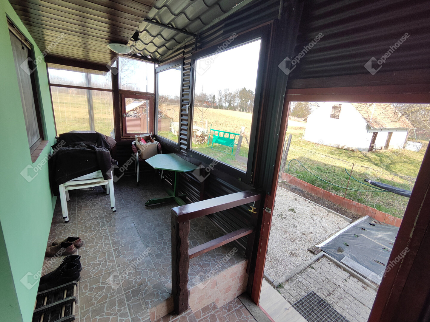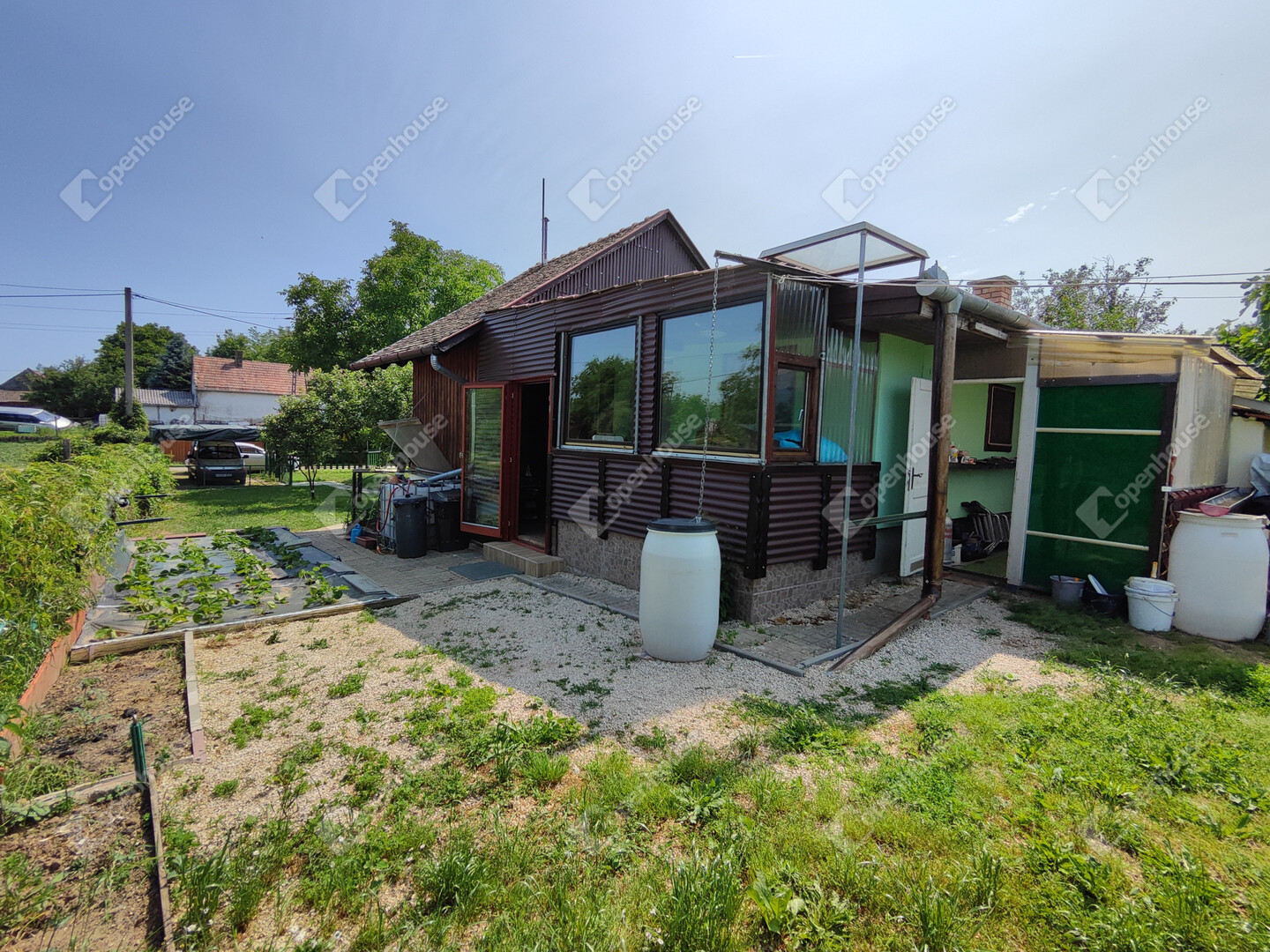 A házban található: nappali, konyha-étkezővel, fürdőszoba/WC, előszoba, 2 hálószoba, fedett zárt terasz, kis műhely kinti WC-vel illetve száraz pince előkészítő résszel. Villany bekötve, víz esővízgyűjtőből házi vízművel van megoldva, derítőbe folyik. A ház melegéről elektromos központifűtés és egy kályha gondoskodik. Az ingatlan könnyen megközelíthető, kifüggesztéses. Állandó lakhatásra is be lehet jelentkezni. Előre egyeztetés után mutatható!