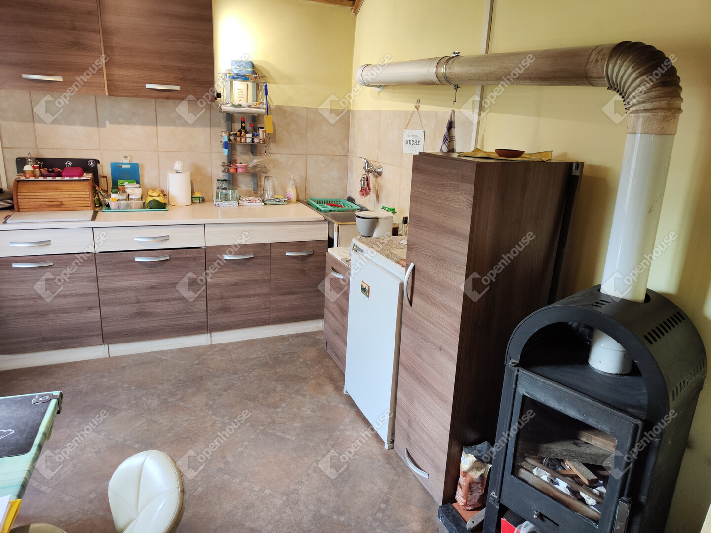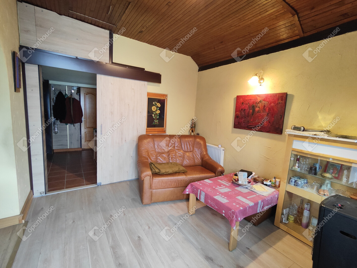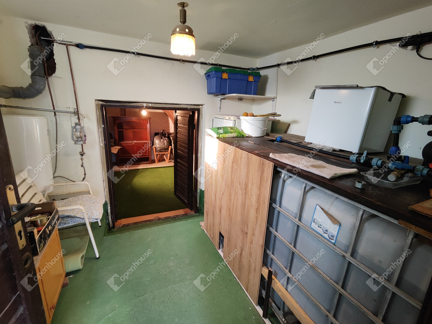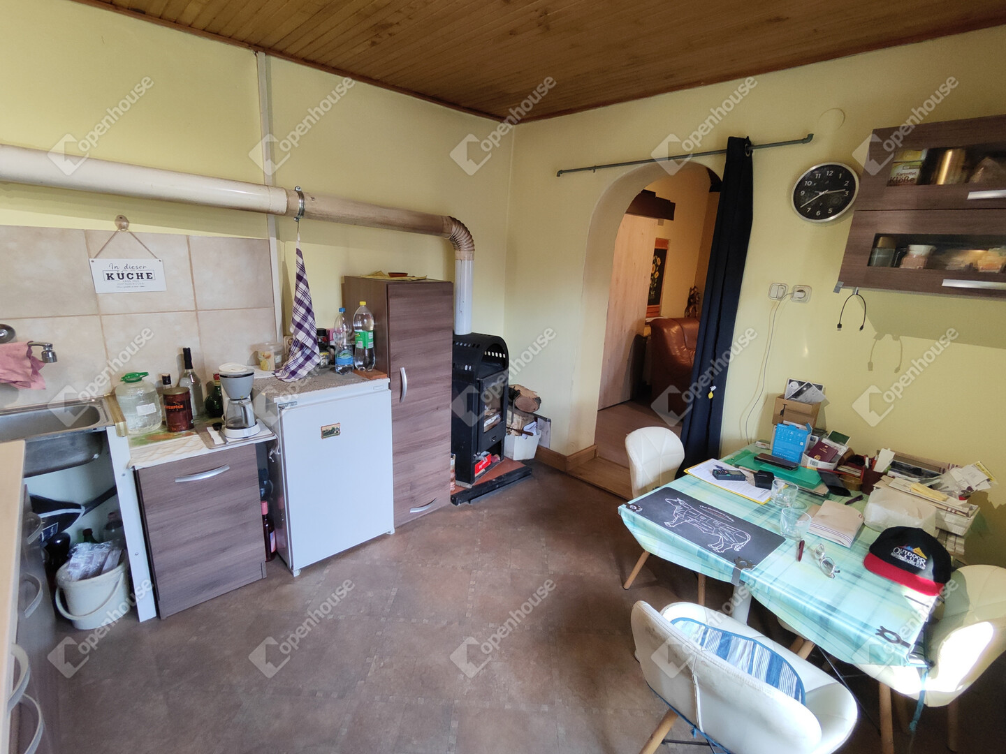 A házban található: nappali, konyha-étkezővel, fürdőszoba/WC, előszoba, 2 hálószoba, fedett zárt terasz, kis műhely kinti WC-vel illetve száraz pince előkészítő résszel. Villany bekötve, víz esővízgyűjtőből házi vízművel van megoldva, derítőbe folyik. A ház melegéről elektromos központifűtés és egy kályha gondoskodik. Az ingatlan könnyen megközelíthető, kifüggesztéses. Állandó lakhatásra is be lehet jelentkezni. Előre egyeztetés után mutatható!