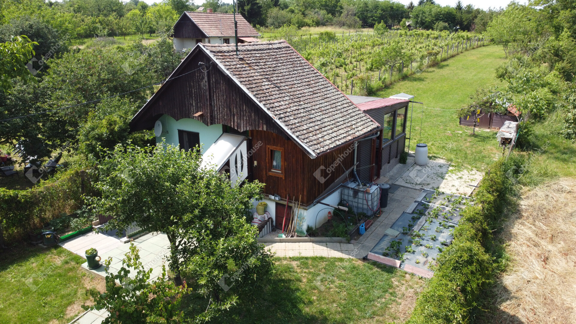 Eladásra kínálom Marcali szőlőhegyi részén ezt a csendes, nyugodt helyen található zártkerti ingatlant. A ház falazata tégla és könnyűszerkezetű, cserép tetővel.