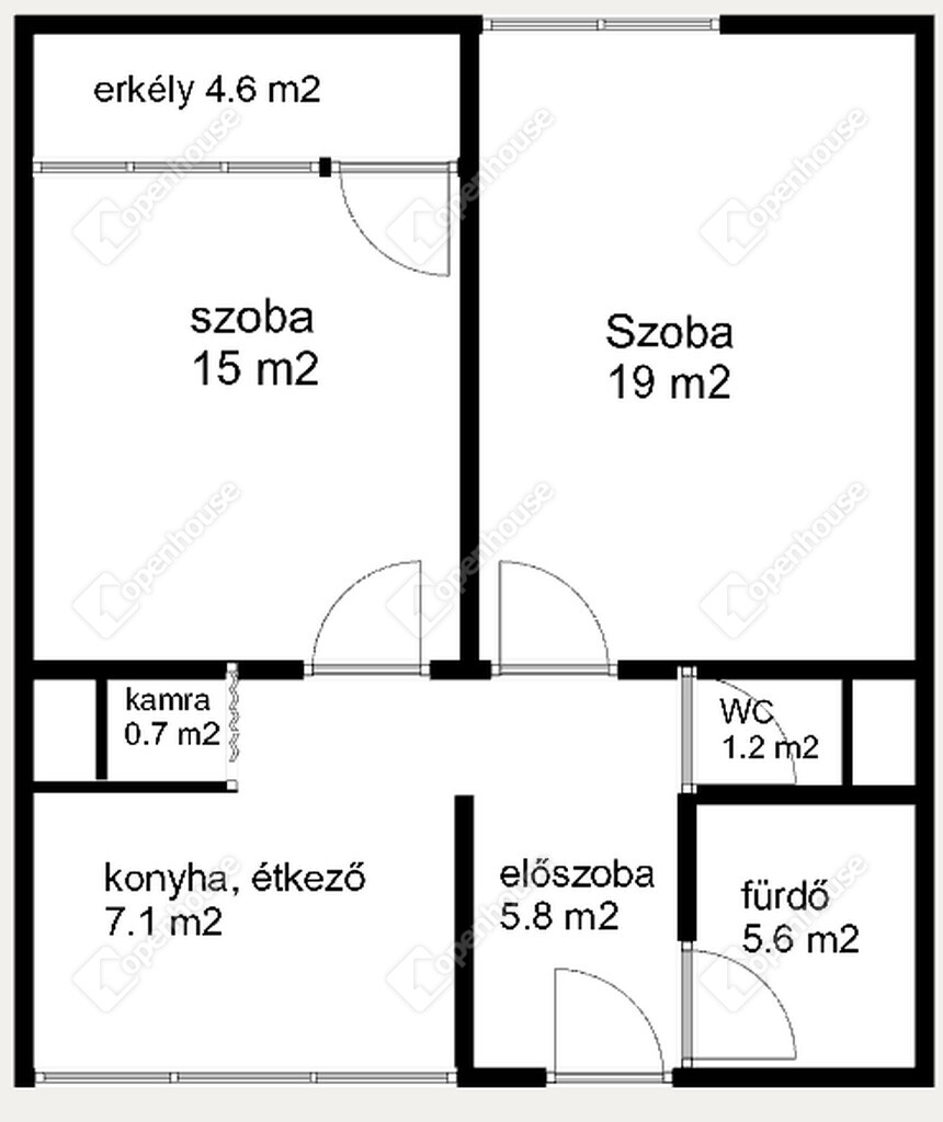 2szoba, konyha étkező,kamra, fürdő, külön Wc