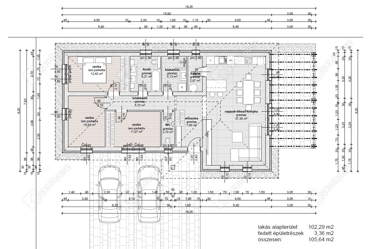 | Amerikai konyha | 37.35 m2 | Járólap |