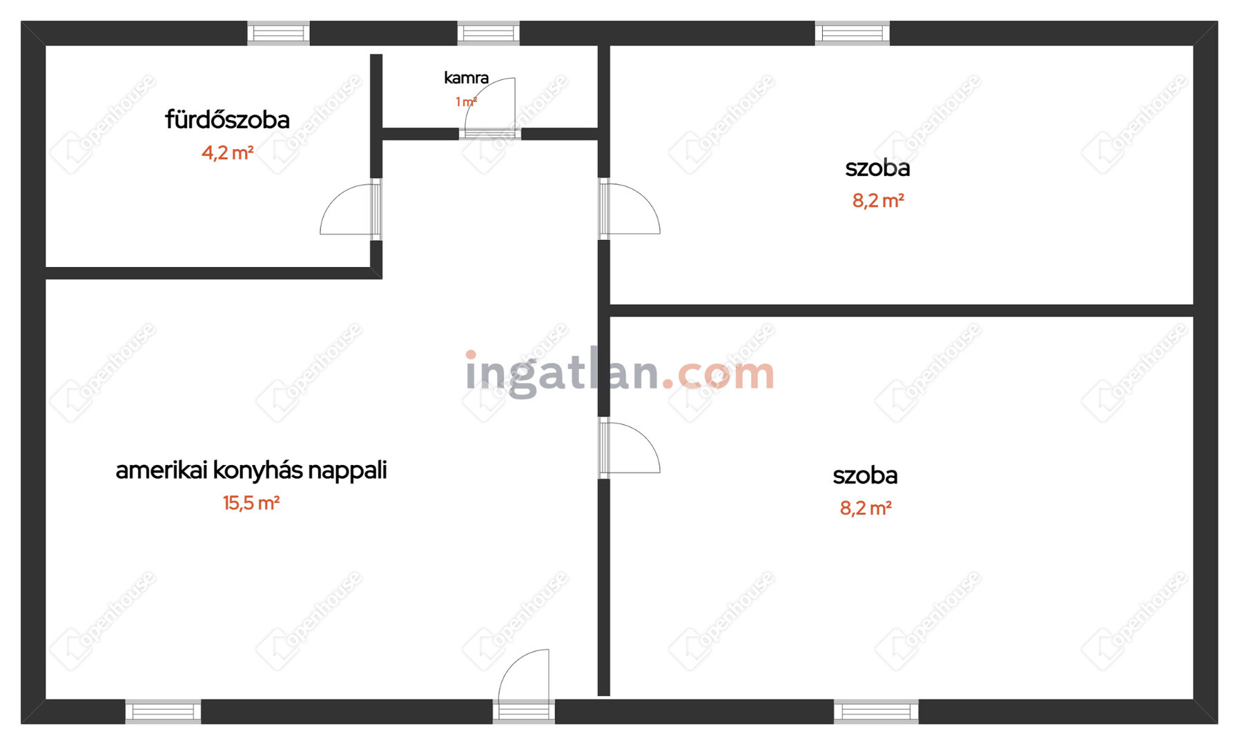 | Amerikai konyha | 16.30 m2 | Járólap |