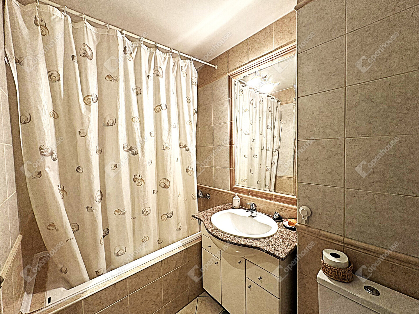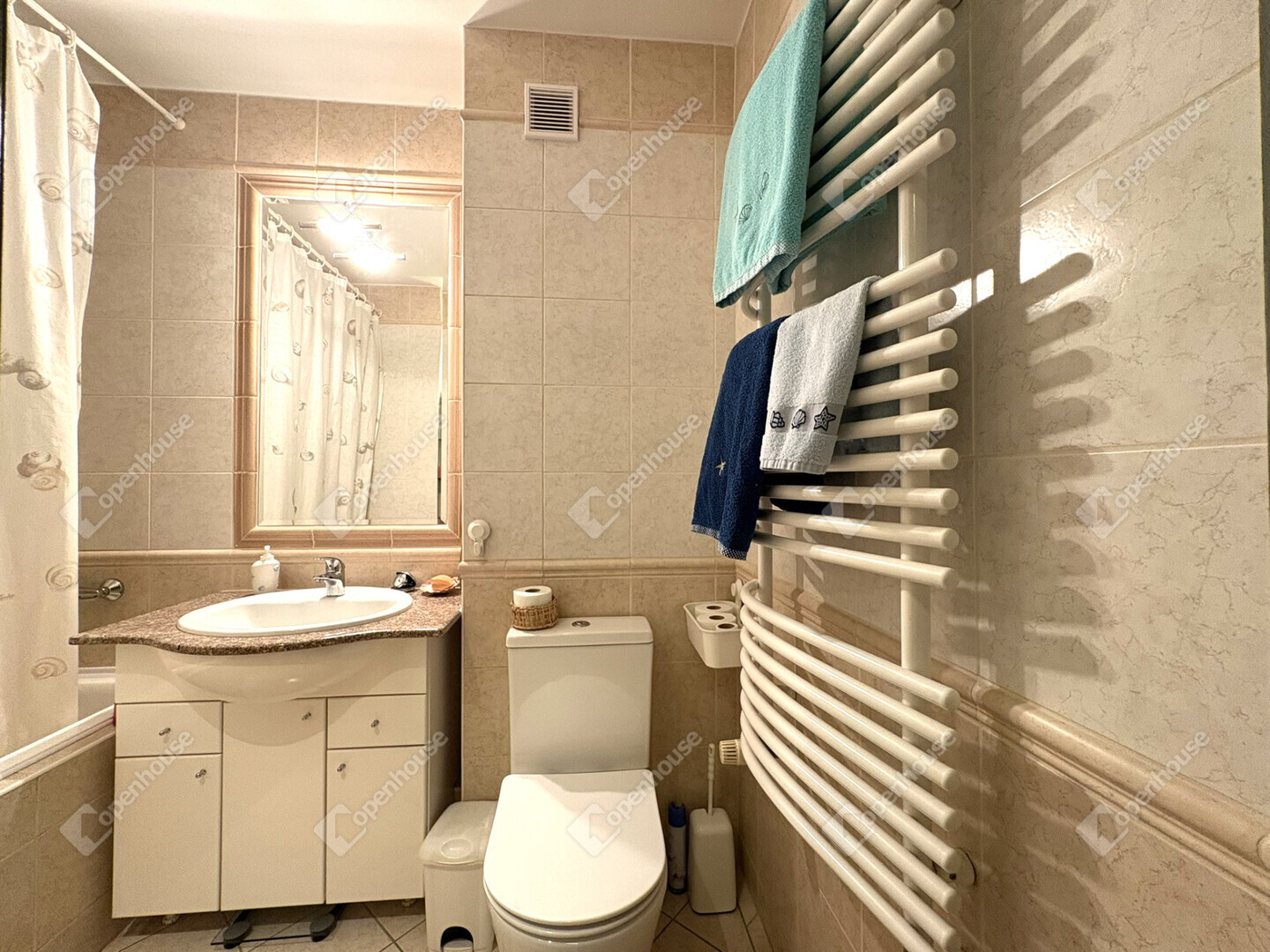 - A fürdőszoba Grohe csaptelepekkel, akril káddal és törölközőszárítós radiátorral felszerelt.