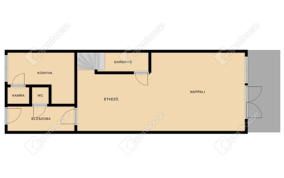 | Előtér | 5.00 m2 | Járólap |