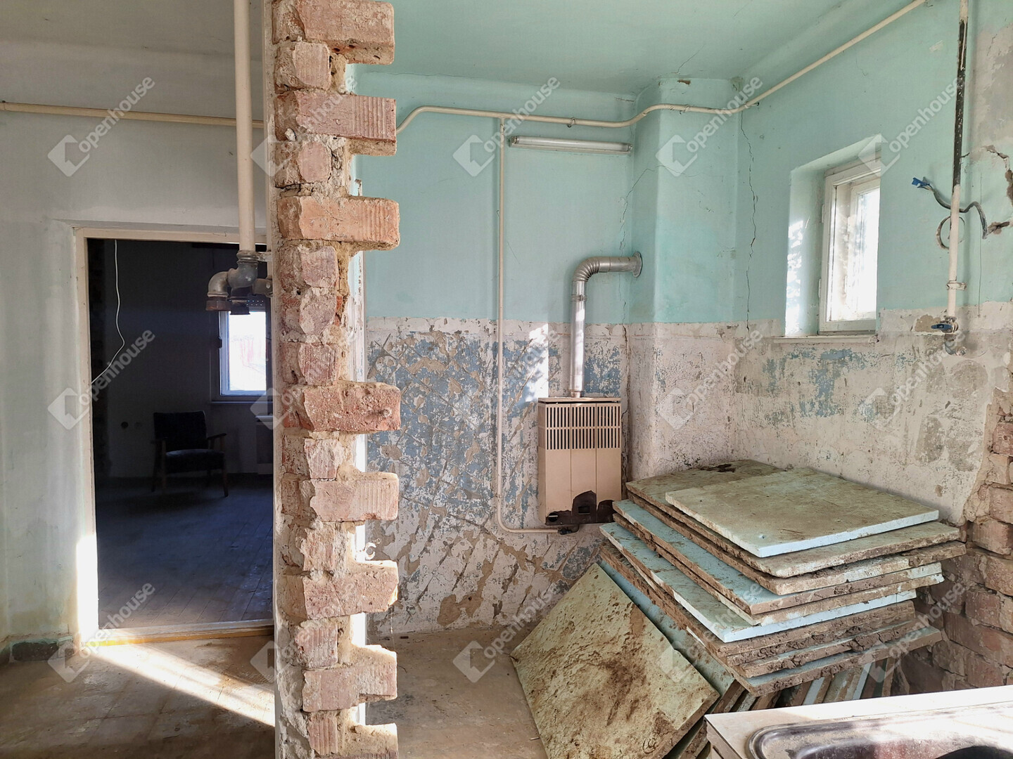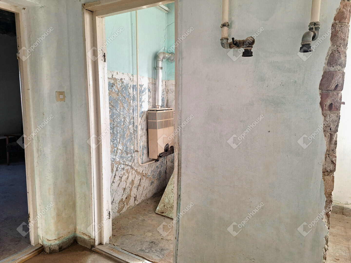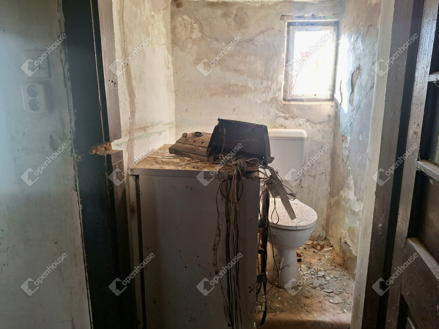 A fürdőszoba egyik fala a bővítés során kibontásra került, az új falszakasz felhúzása az új tulajdonosra vár – így teljesen szabadon alakítható. A házban a gázcsövek bent vannak, a fűtés korábban konvektorral működött, jelenleg azonban egyetlen közmű sincs bekötve vagy üzemkész állapotban.