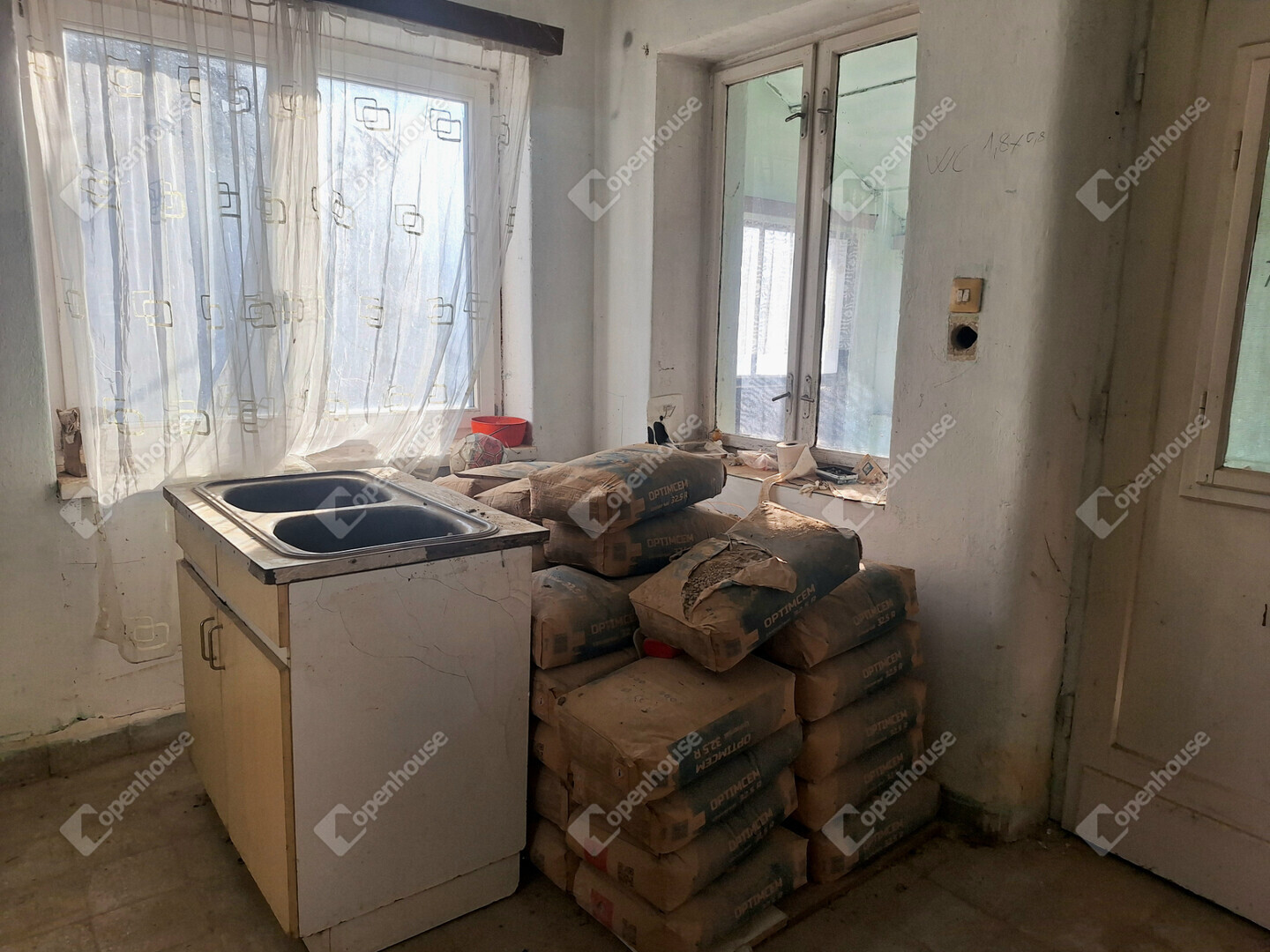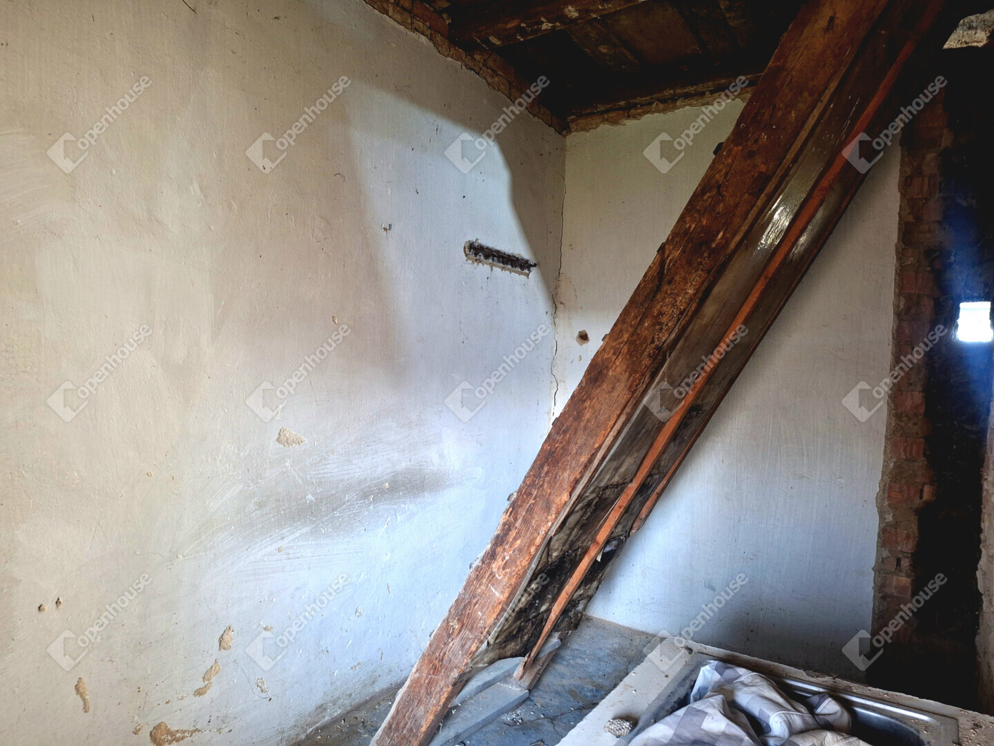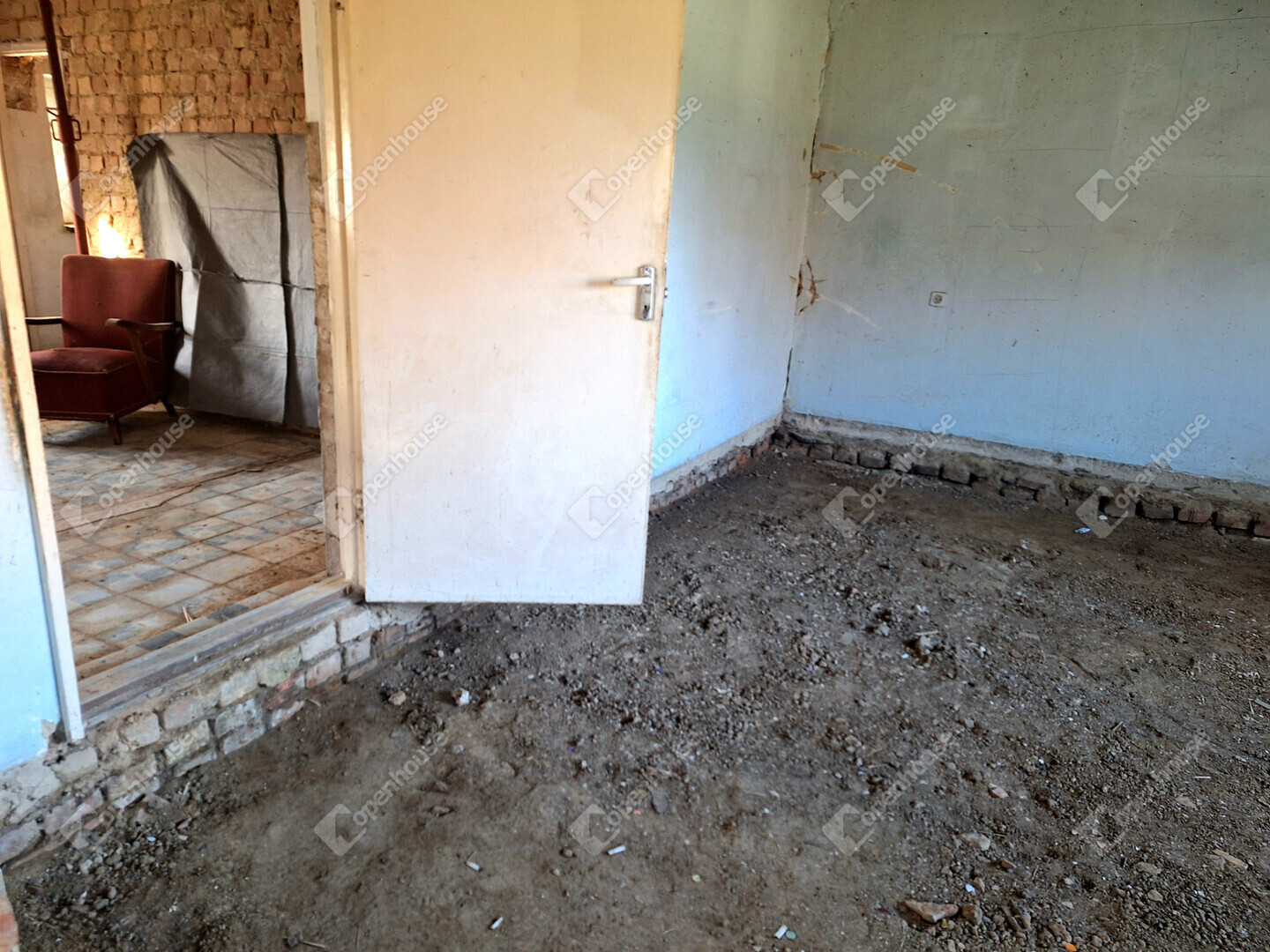 A fürdőszoba egyik fala a bővítés során kibontásra került, az új falszakasz felhúzása az új tulajdonosra vár – így teljesen szabadon alakítható. A házban a gázcsövek bent vannak, a fűtés korábban konvektorral működött, jelenleg azonban egyetlen közmű sincs bekötve vagy üzemkész állapotban.