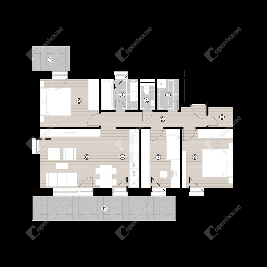 | Közlekedő | 7.43 m2 | Laminált padló |