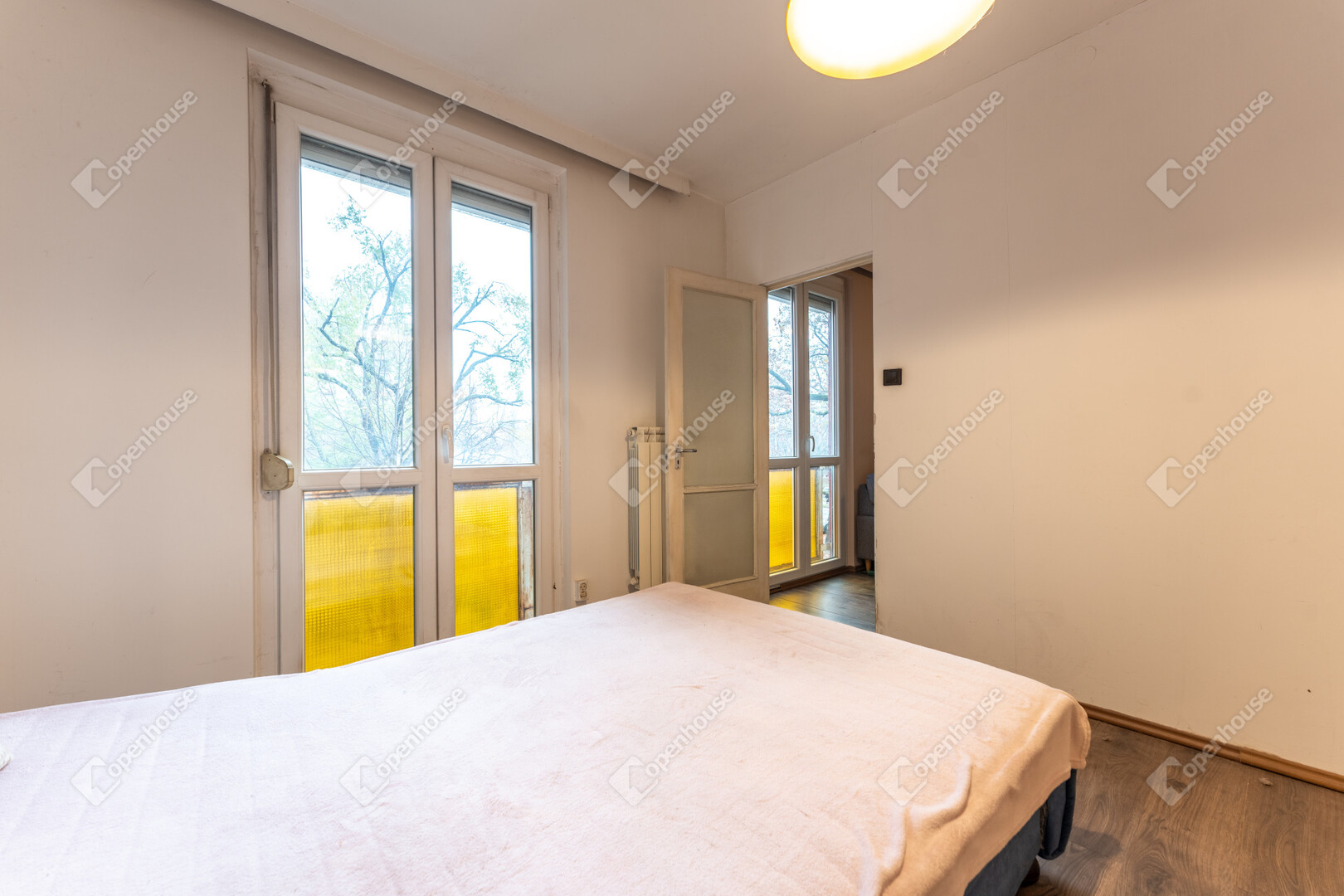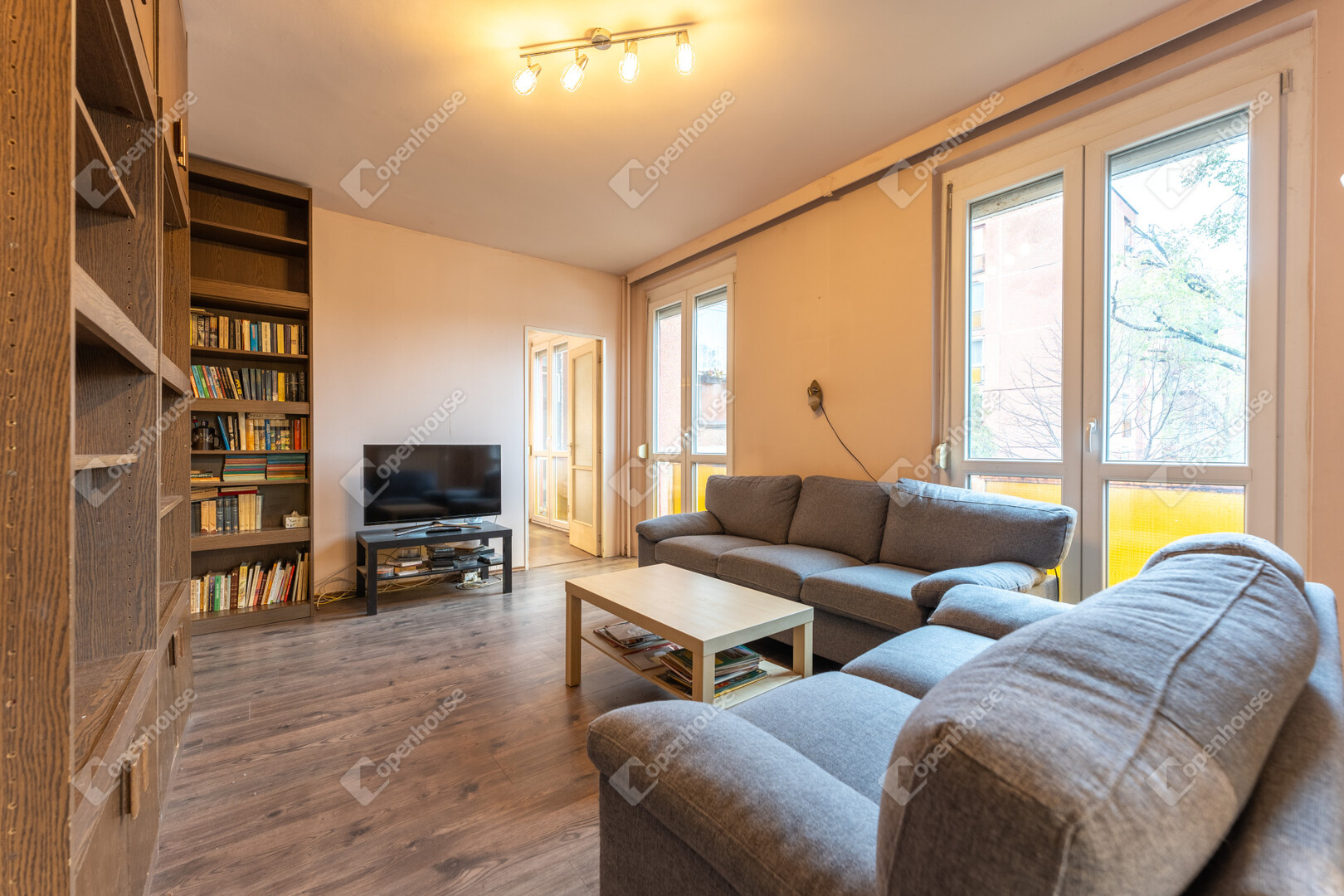 A napfényes társasházi lakás ablakai 3 oldalra néznek (parkra és utcára) .