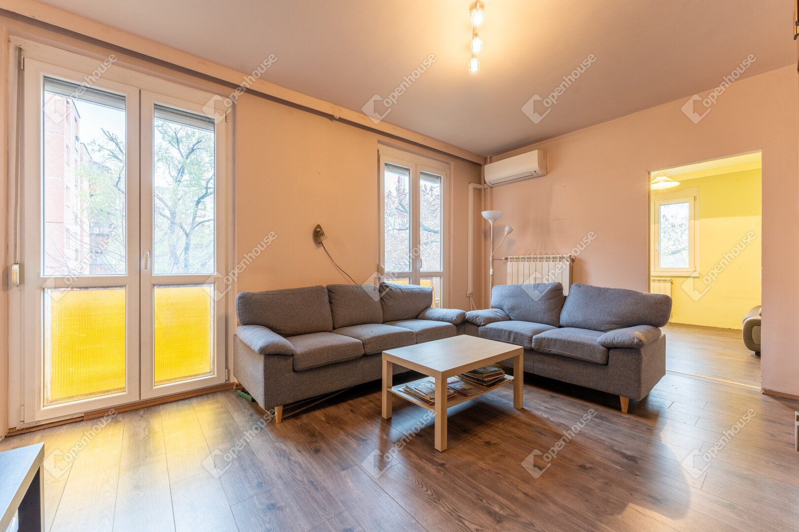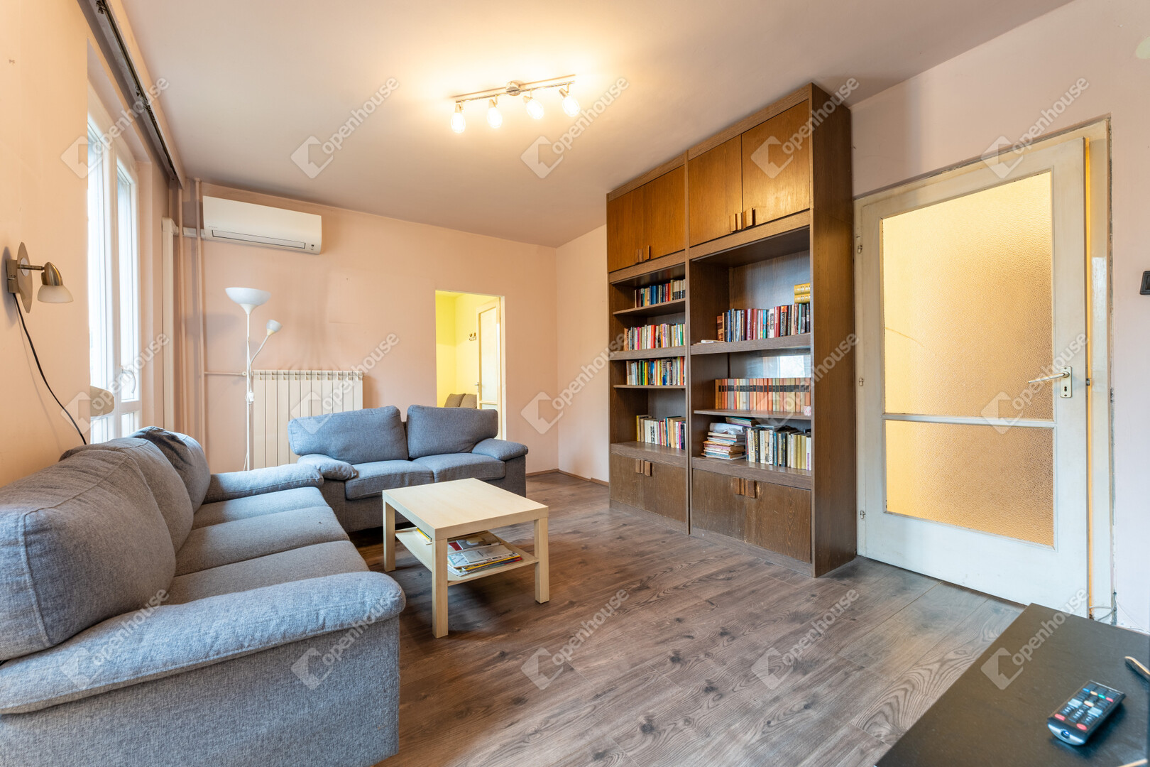 A 4 szobás első emeleti vízórás ingatlan távfűtésű és légkondicionálóval felszerelt.