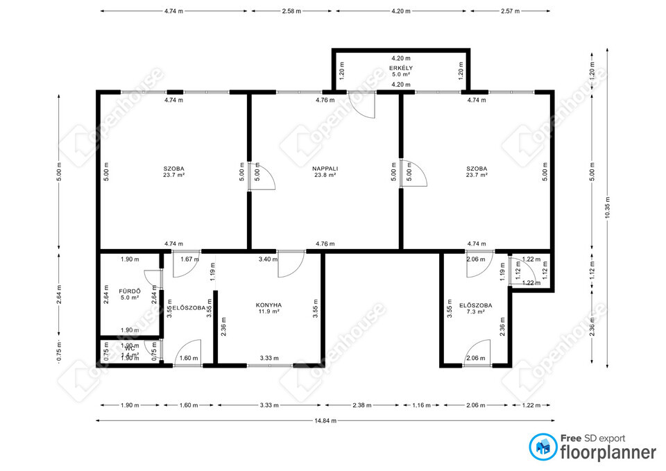 nappali + 2 külön nyíló szoba, tágas terek, jól bútorozható helyiségek jellemzik. A lakás erkéllyel rendelkezik, amely kellemes pihenőhelyet biztosít.