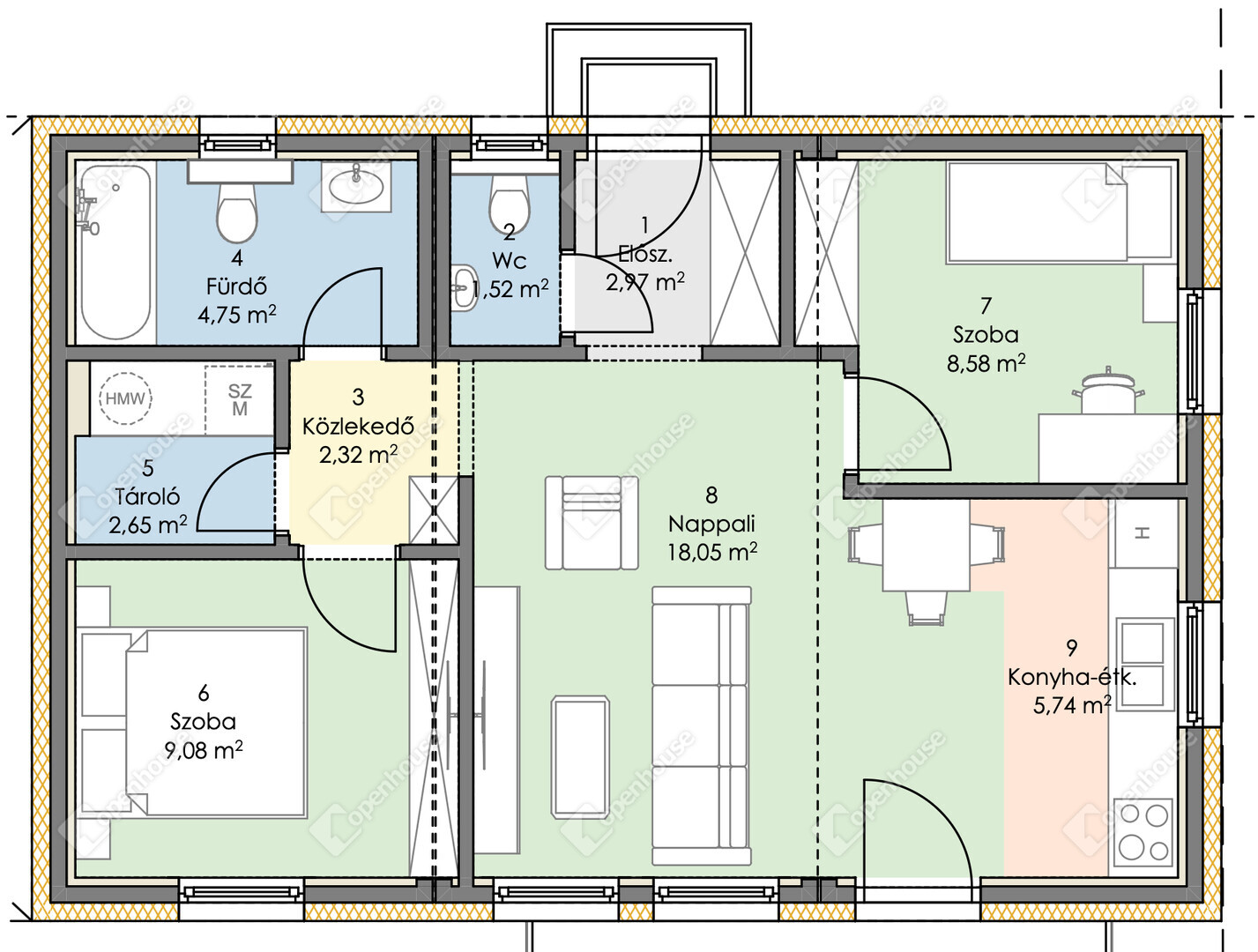 | Előtér | 2.97 m2 | Vinyl padlóburkolat |