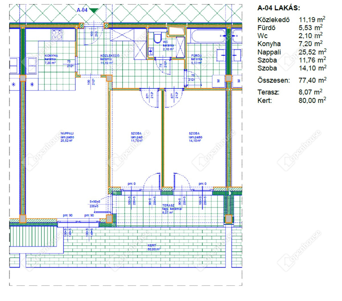 | Konyha | 7.00 m2 | Járólap |