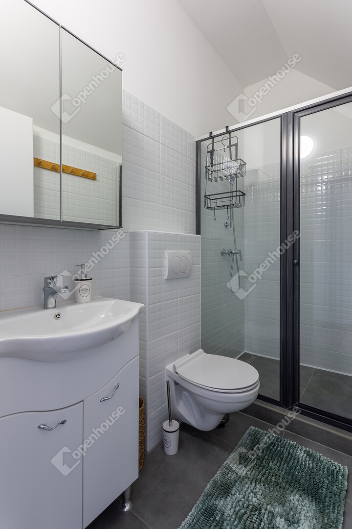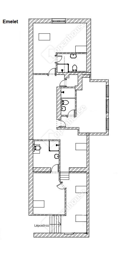 *3 külön bejáratú szoba, mindegyik saját fürdőszobával és WC-vel, közlekedő/közösségi tér