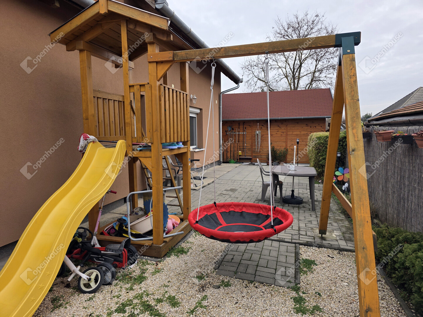 A 318 m²-es telken rendezett kert és autóbeálló található.