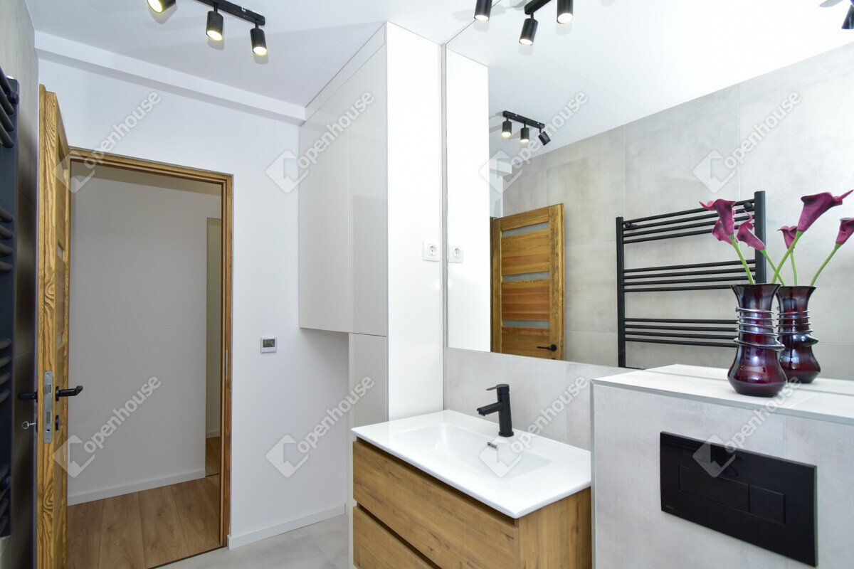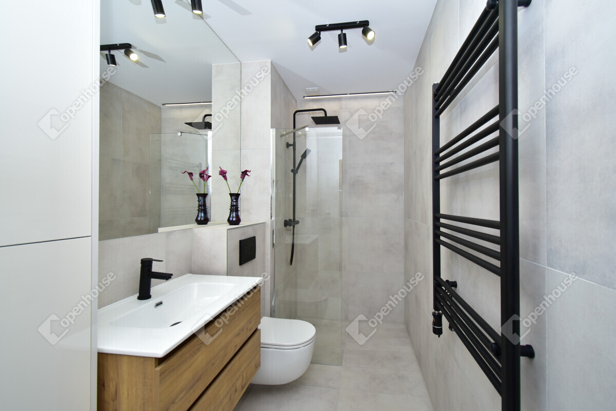 vadonatúj, modern, ízlésesen kialakított fürdőszoba és konyha