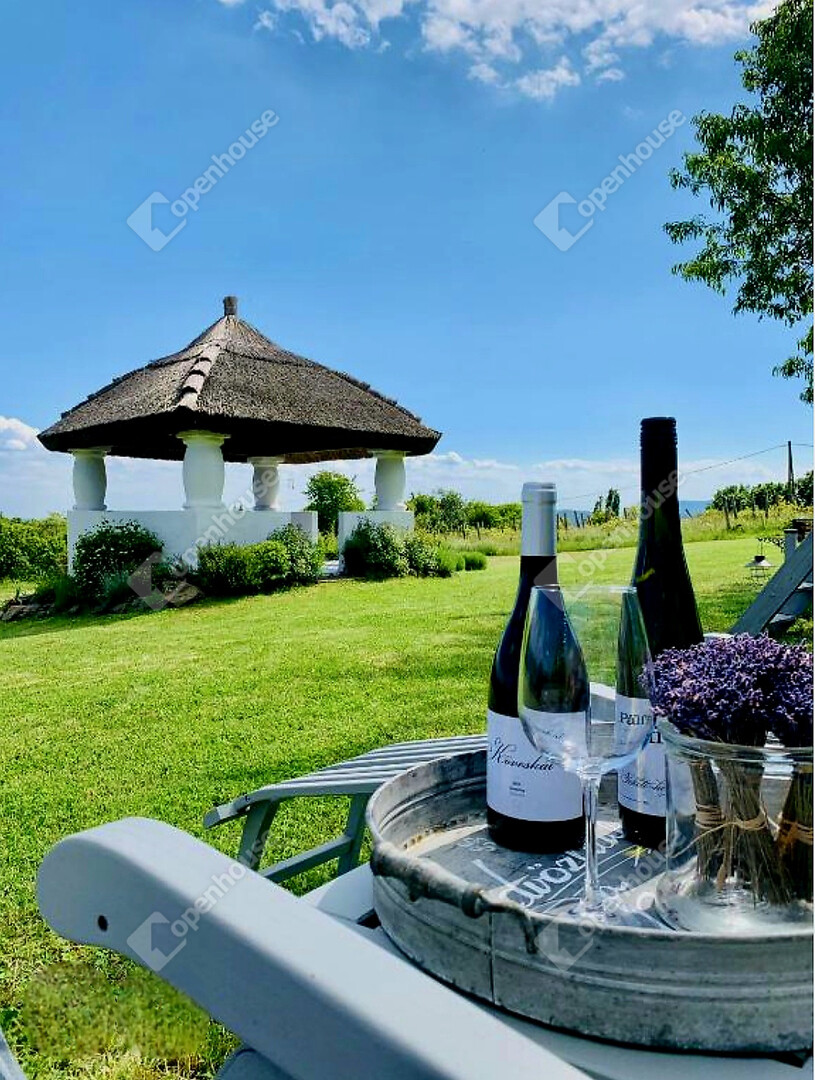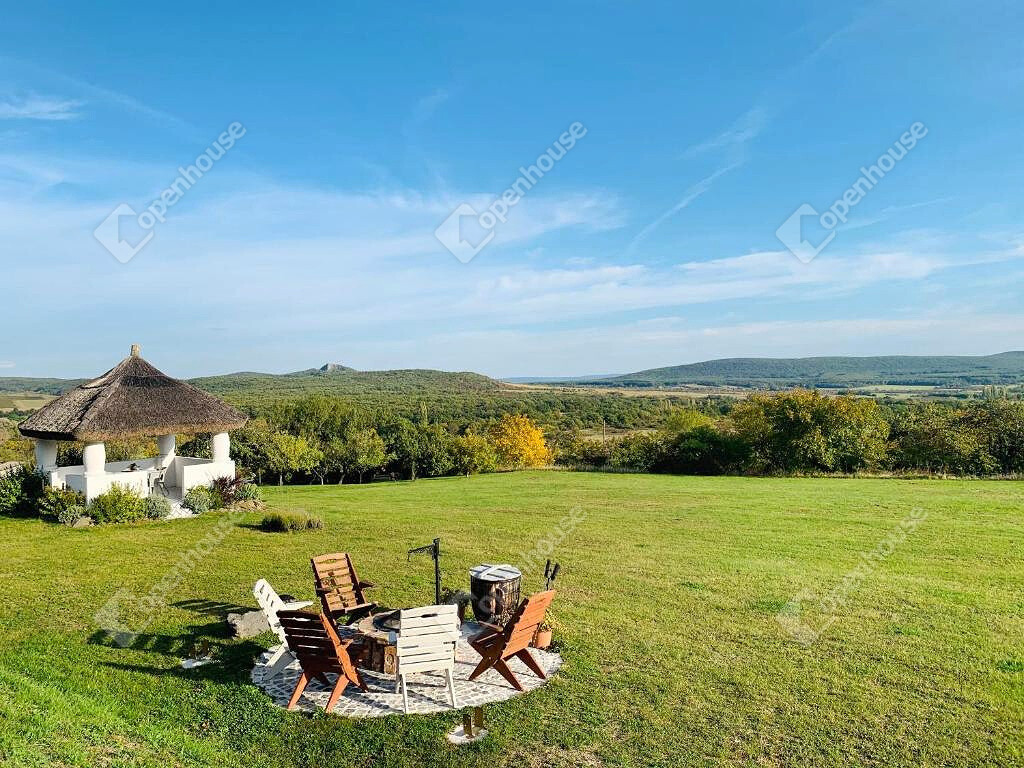 Zavartalan pihenést biztosító környezetben, lenyűgöző panorámával a környező hegyekre, szőlődűlőkre, a Hegyestűre és Köveskálra.