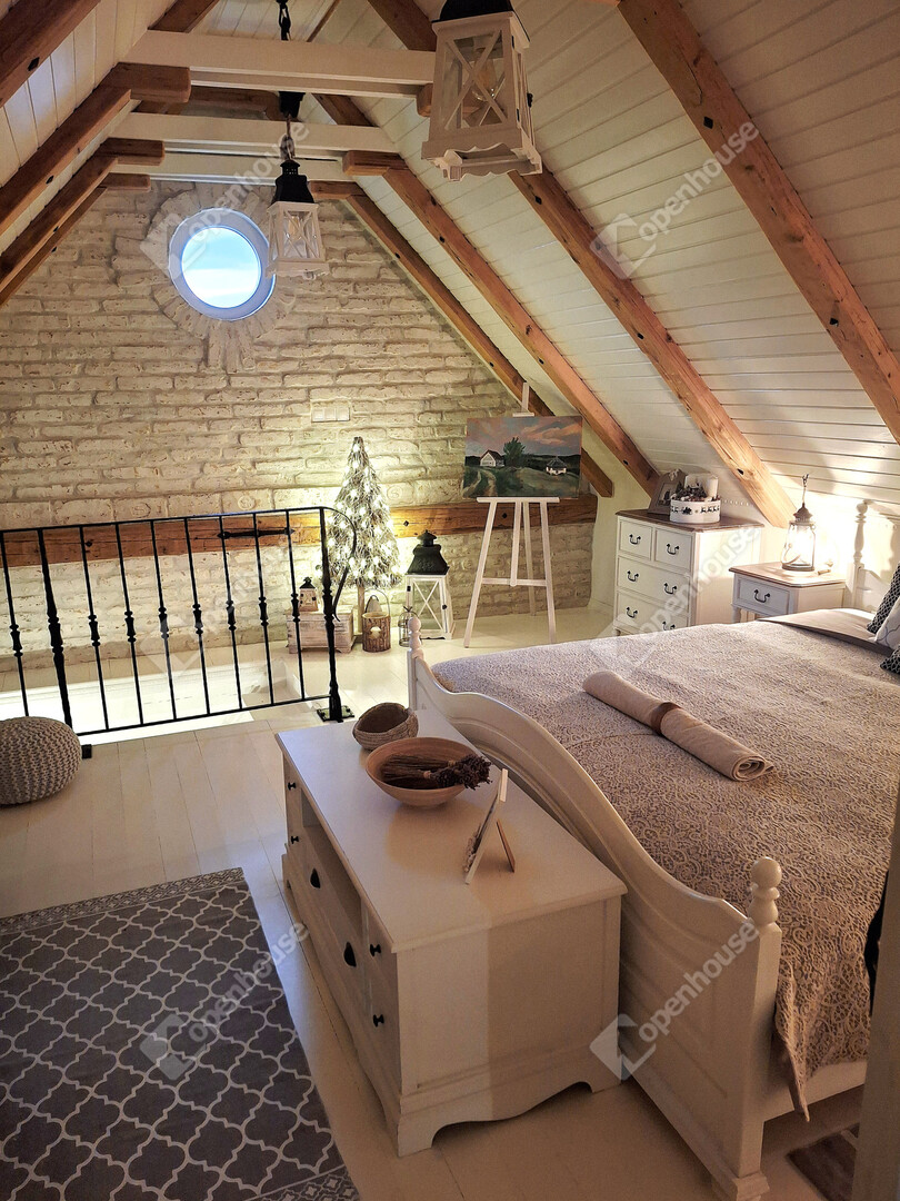 - az alsó szinten a konyha - étkező mellett a fürdőszobát és a pincét találjuk, a tetőtérben kettő egymásból nyíló hálószoba került kialakításra