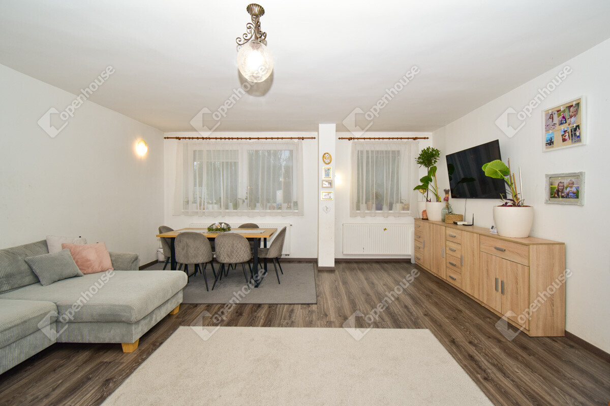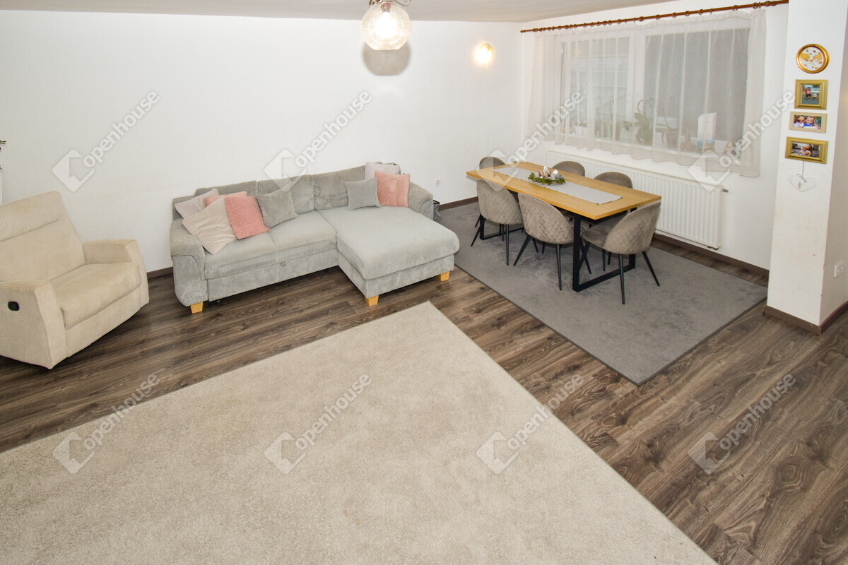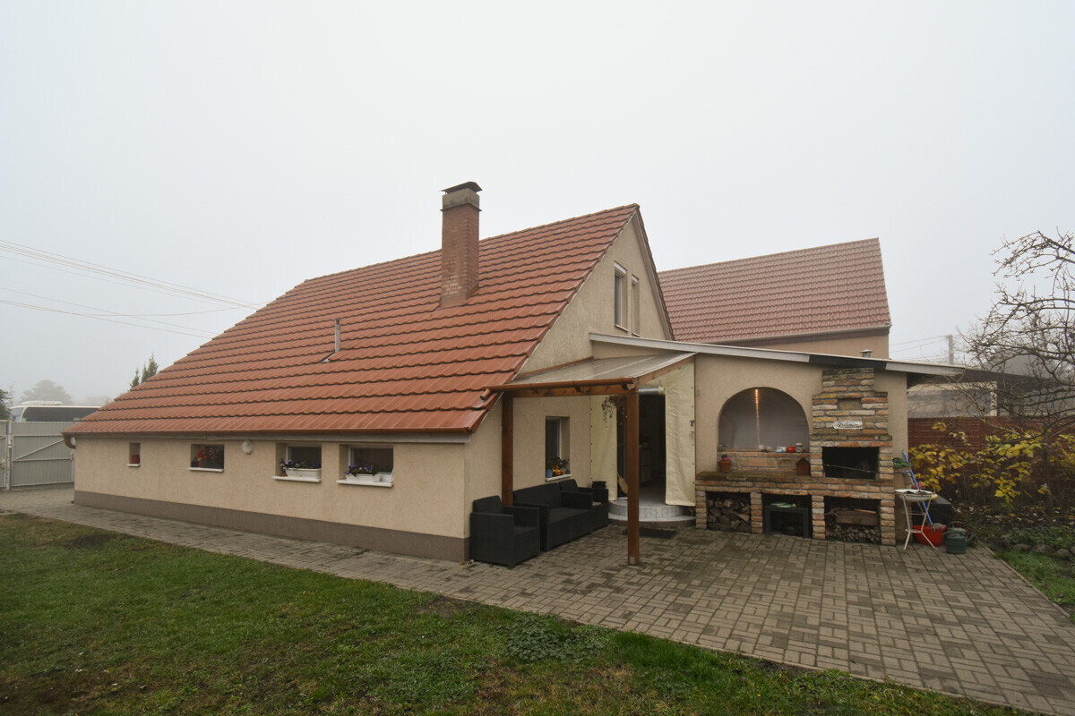A tágas terek, a hatalmas nappali, a hangulatos kemence, a gondozott kert és a praktikus kialakítás mind azt szolgálják, hogy ez a ház ne csupán egy ingatlan legyen — hanem az a hely, ahová jó hazaérkezni.