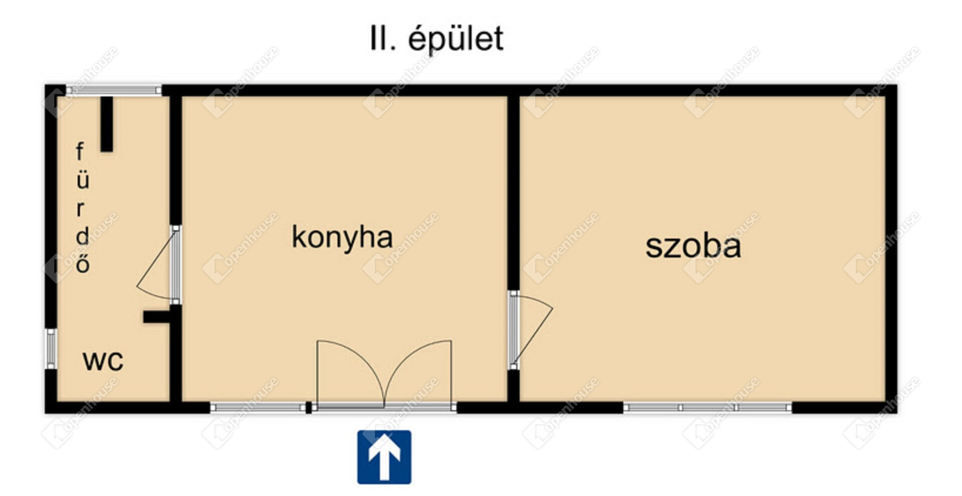 Elrendezés: 1 szoba.