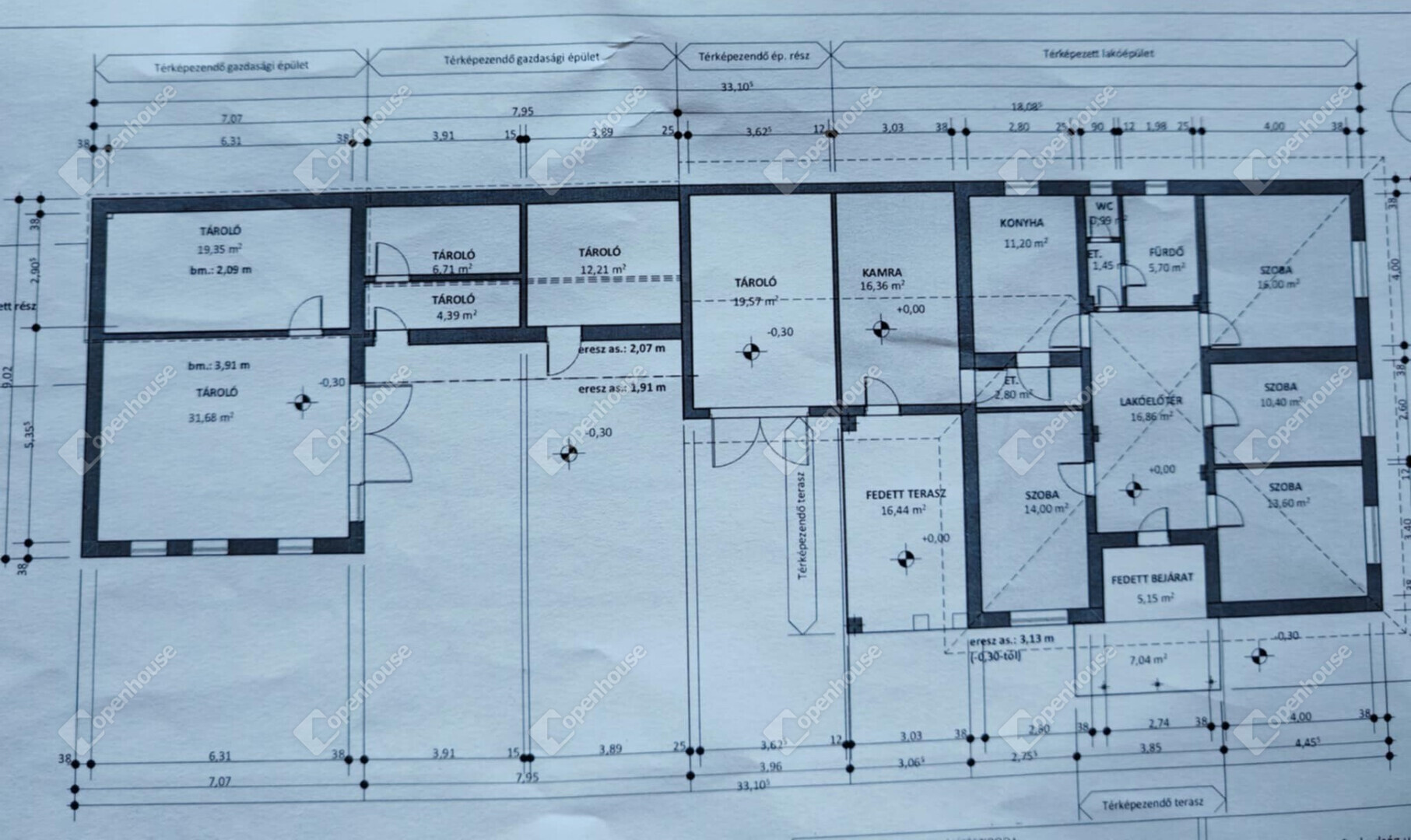 | Terasz | 16.44 m2 | Kőburkolat |