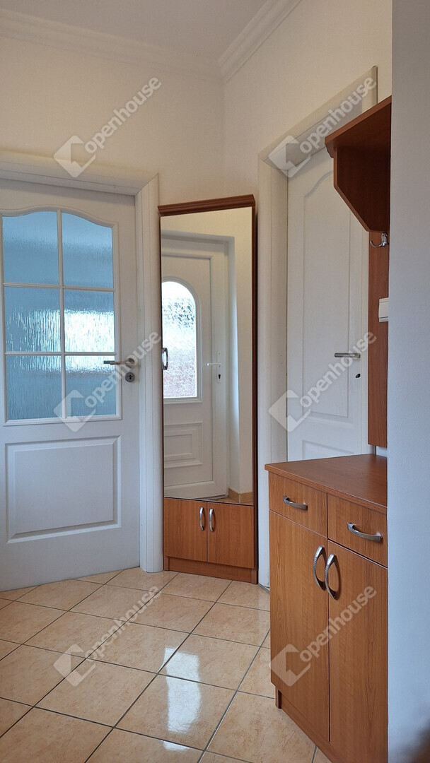 A bejáraton belépve egy egyedileg ide készített előszobabútor fogad, amely a vételár részét képezi.