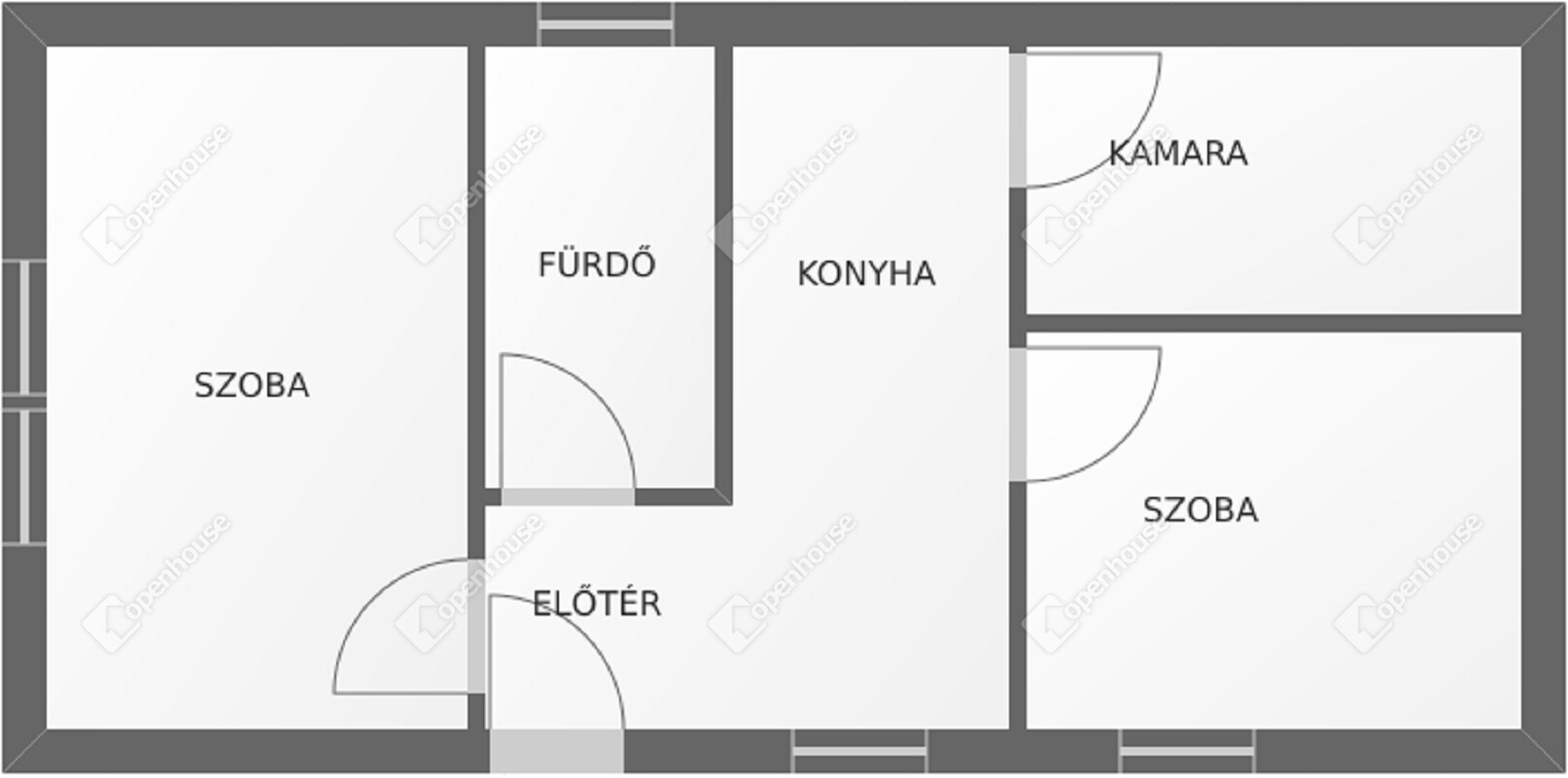 A ház bruttó 61nm, a lakótér alapterülete 48 nm, helyiségei: 2 szoba, konyha, fürdőszoba, előszoba és kamra.