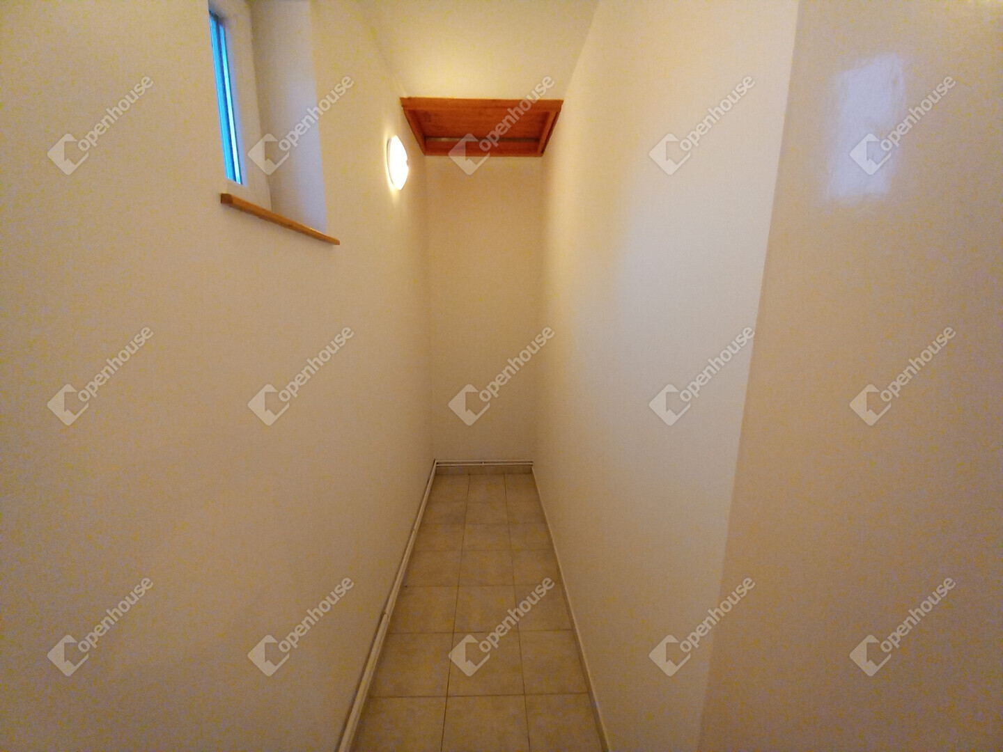 A házhoz tartozik továbbá egy 7,5 m²-es, fűtött tároló, amely praktikus megoldást nyújt szerszámoknak vagy egyéb eszközöknek.