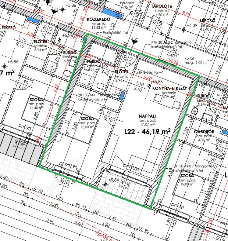 | Nappali | 17.07 m2 | Laminált padló |