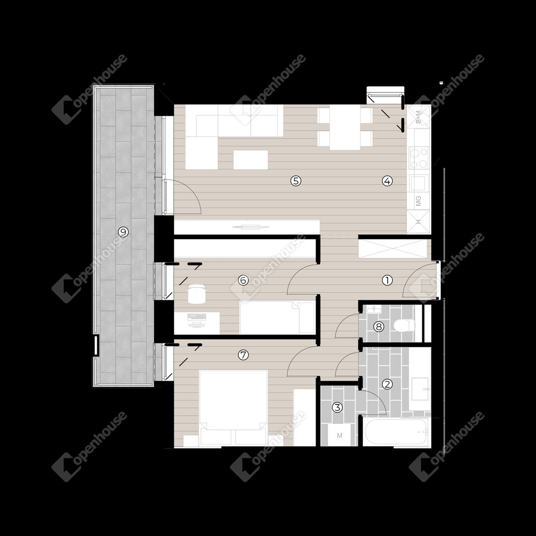 | Előszoba | 6.88 m2 | Laminált padló |