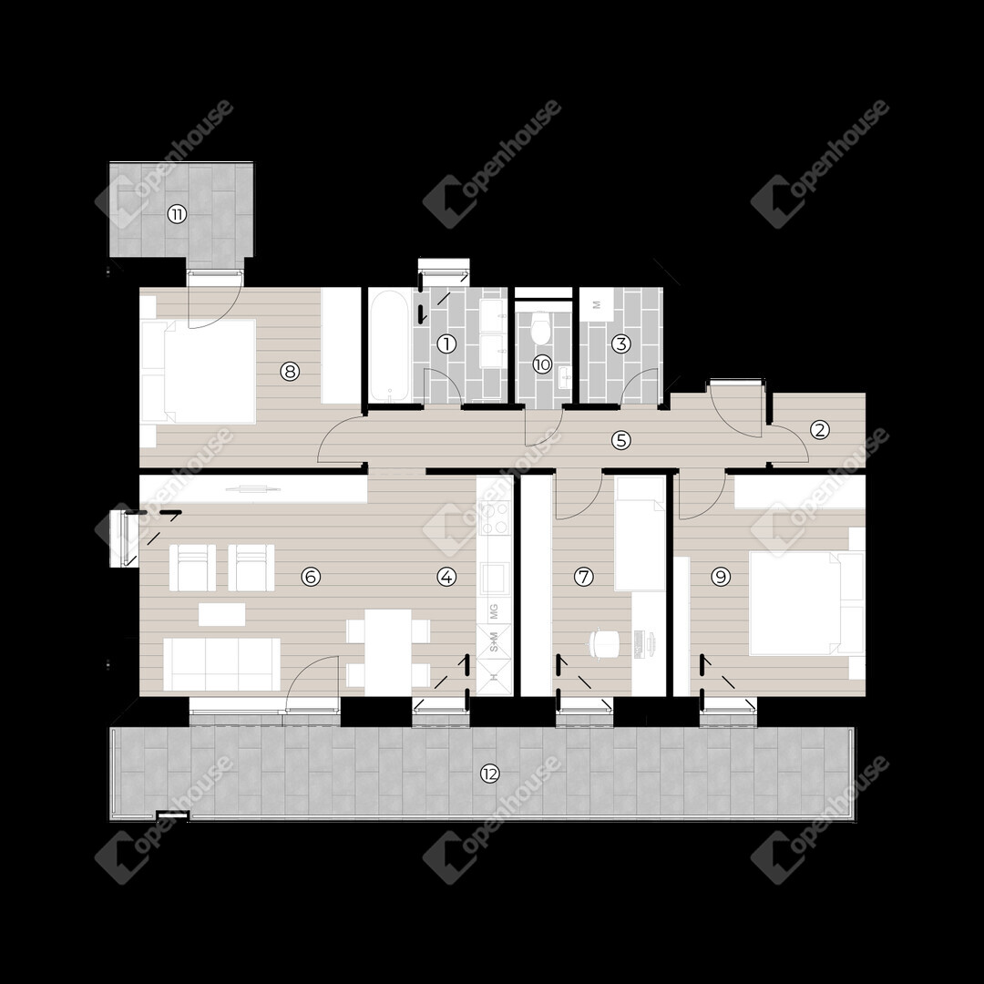 | Közlekedő | 7.43 m2 | Laminált padló |