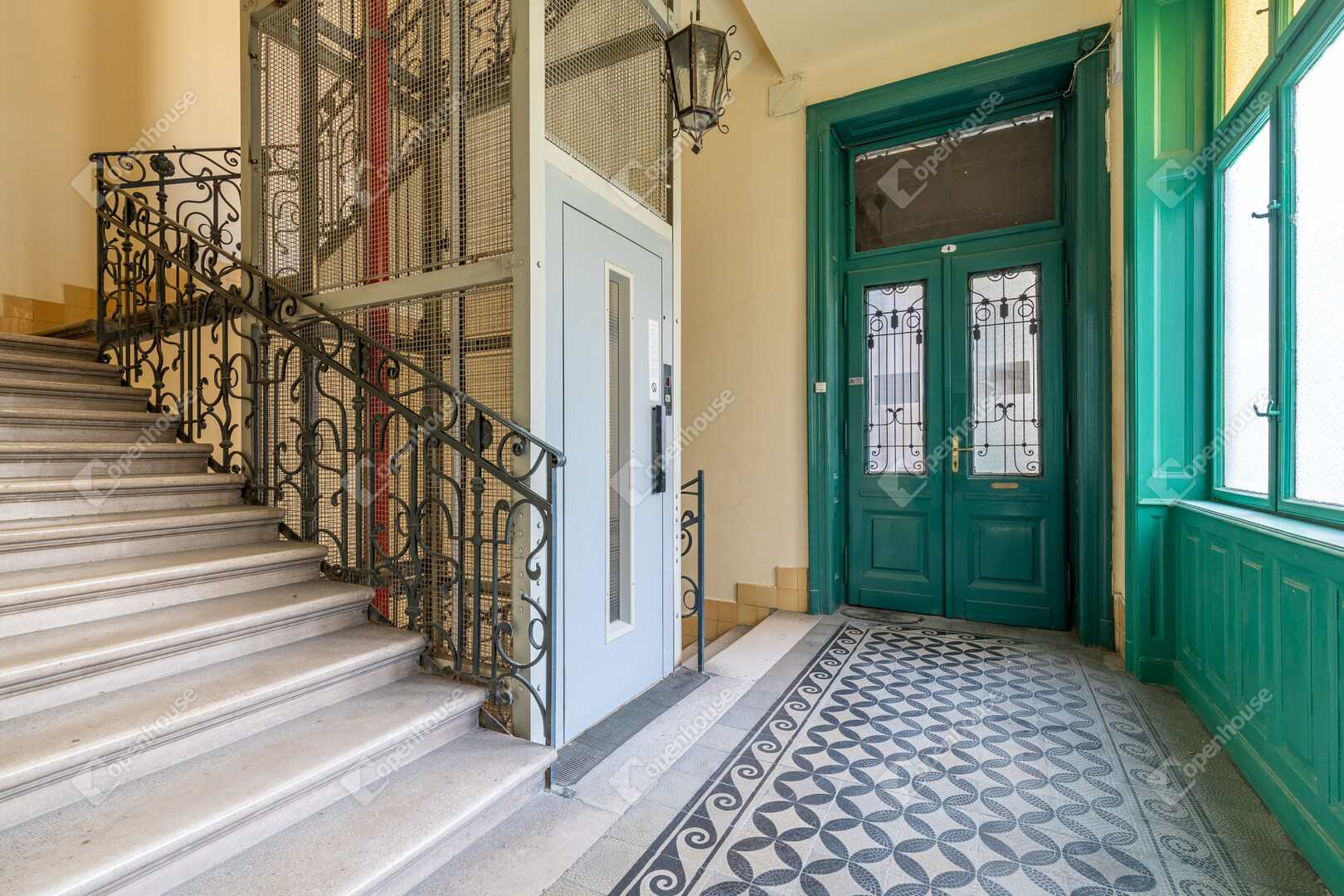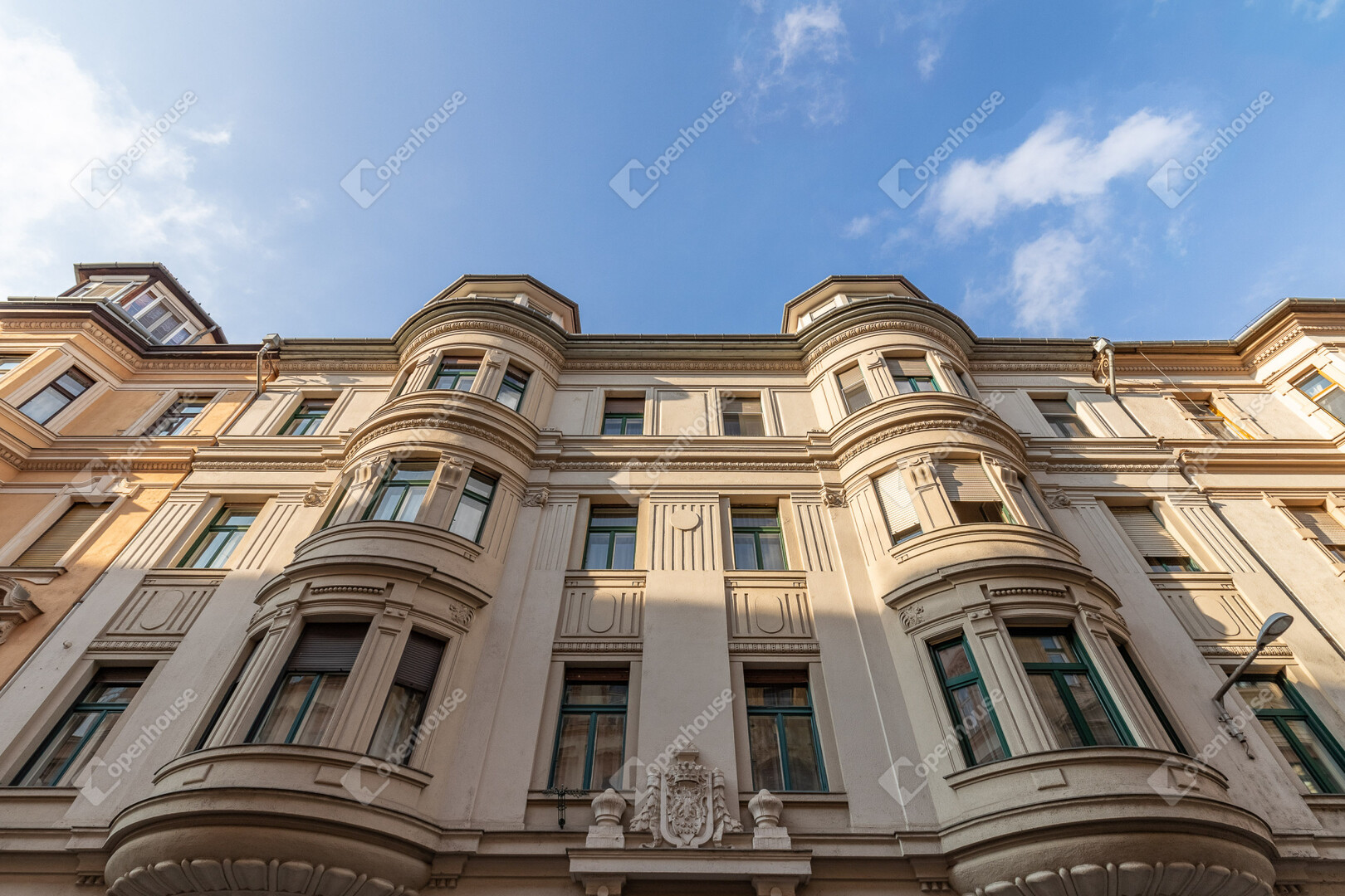 A lakás egy 1900 körül épült, történelmi hangulatú, szépen megőrzött polgári ház első emeletén található.