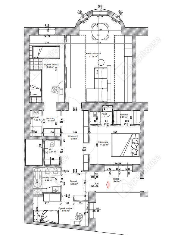 | Amerikai konyha | 32.05 m2 | |