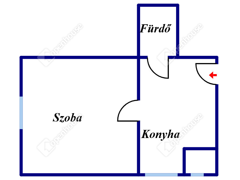 A 35 nm-es lakásba 1 nagy szoba található.