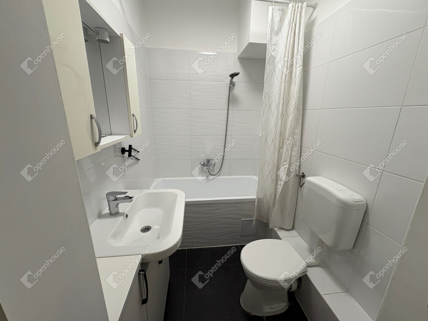 Kádas fürdőszoba, egyben található a WC-vel.