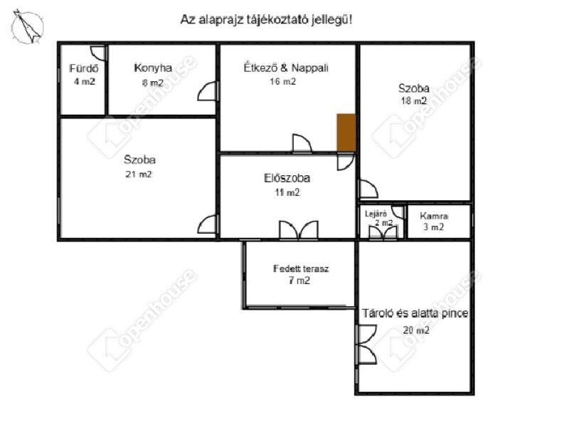 | Előszoba | 11.00 m2 | Járólap |