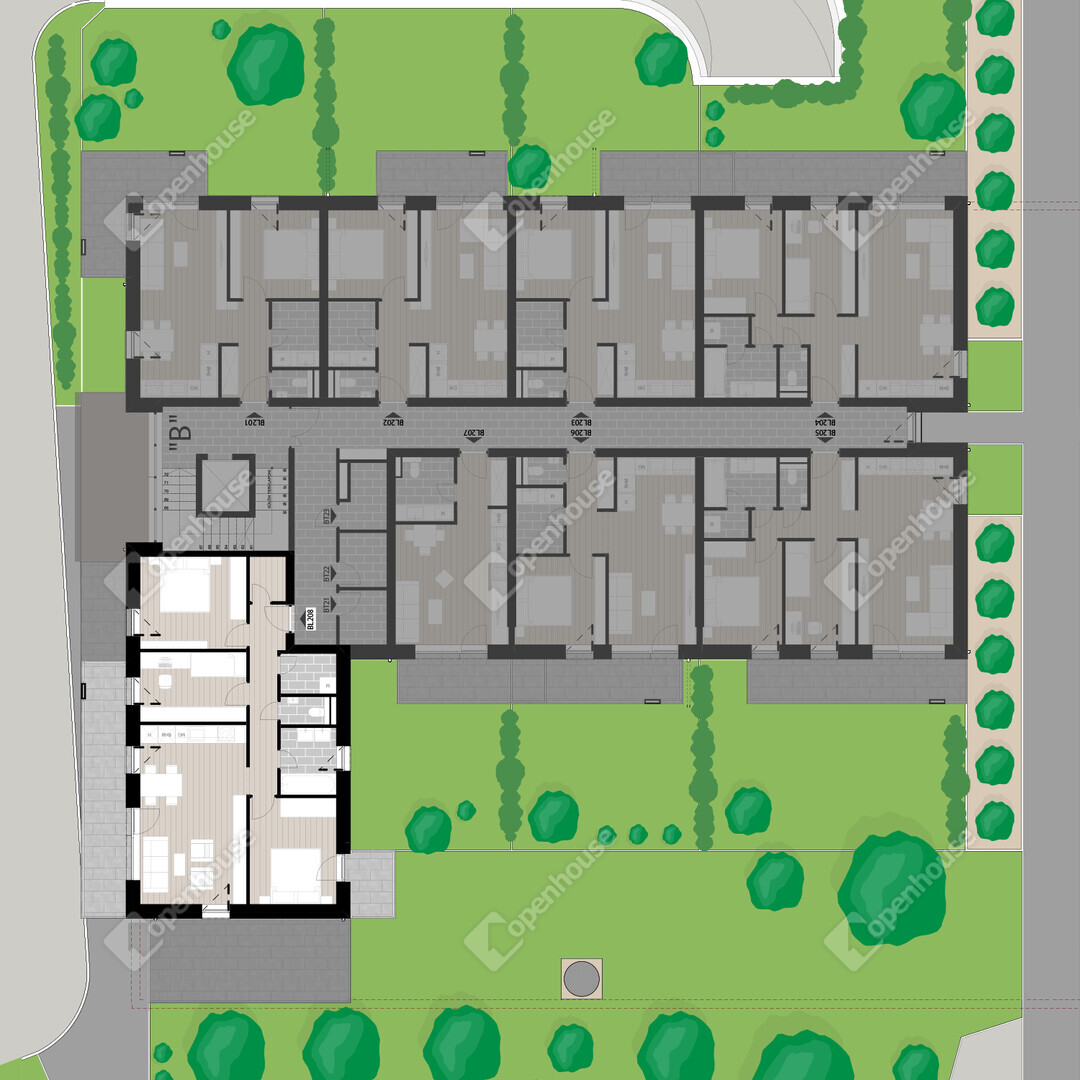 BL208 lakás: 2. emeleti 78,84 m2 alapterületű, 3 szoba nappali elrendezésű, 18,1 m2 erkéllyel.