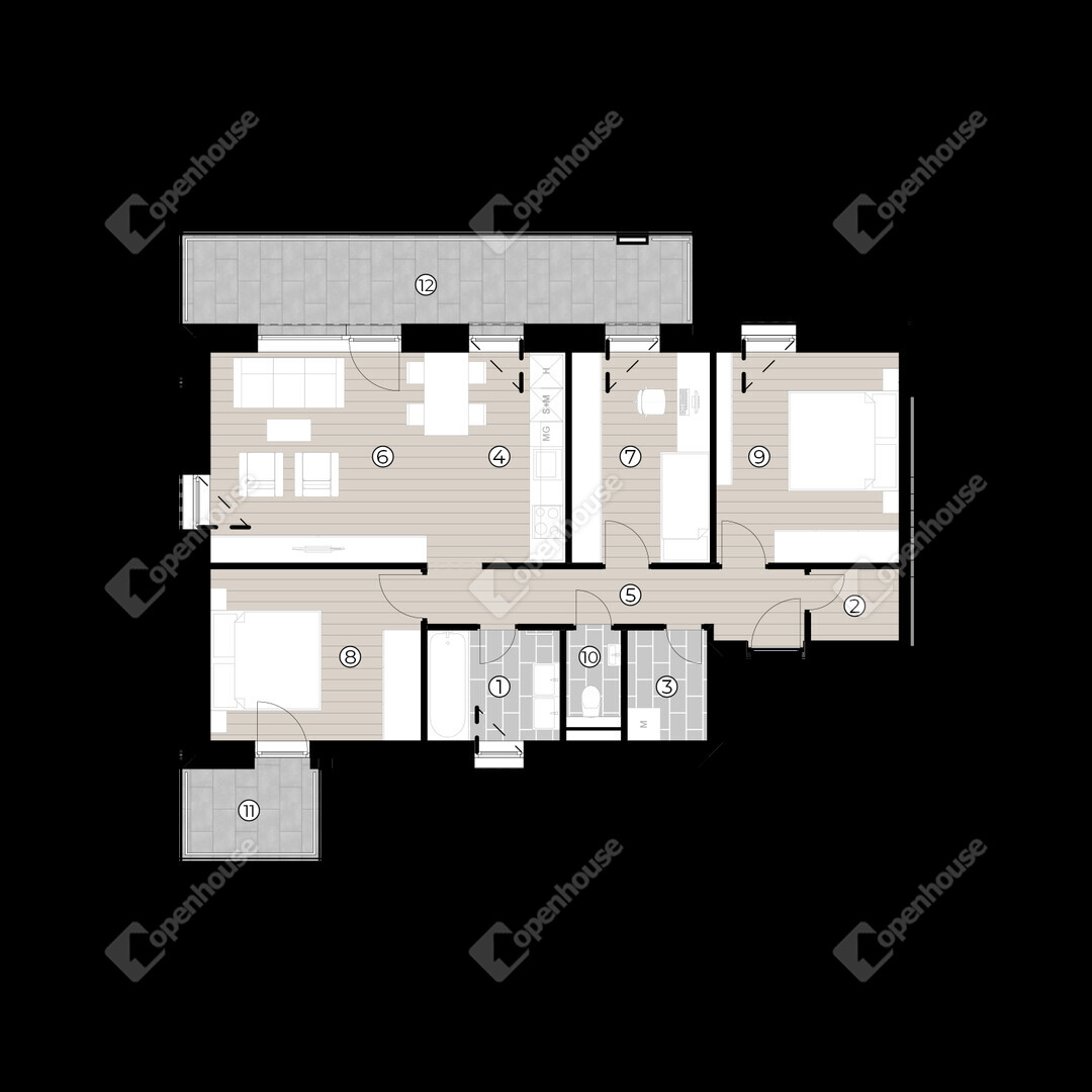 | Közlekedő | 7.43 m2 | Laminált padló |