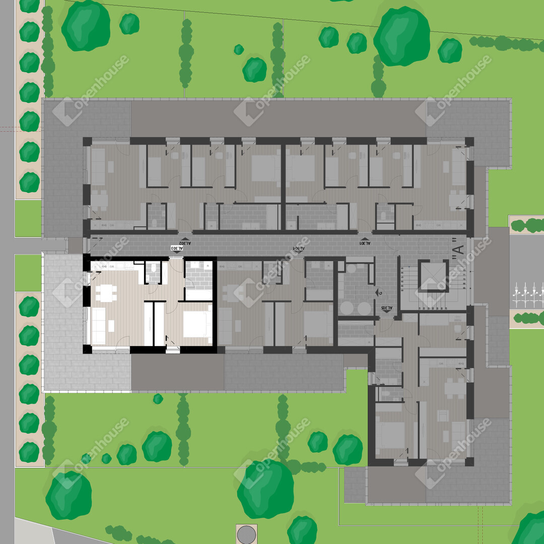 AL303 lakás: 3. emeleti 48,01 m2 alapterületű, 1 szoba nappali elrendezésű, 32,3 m2 erkéllyel.