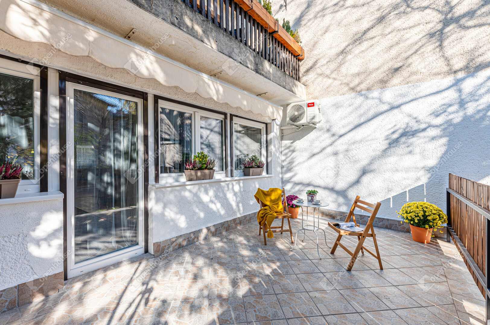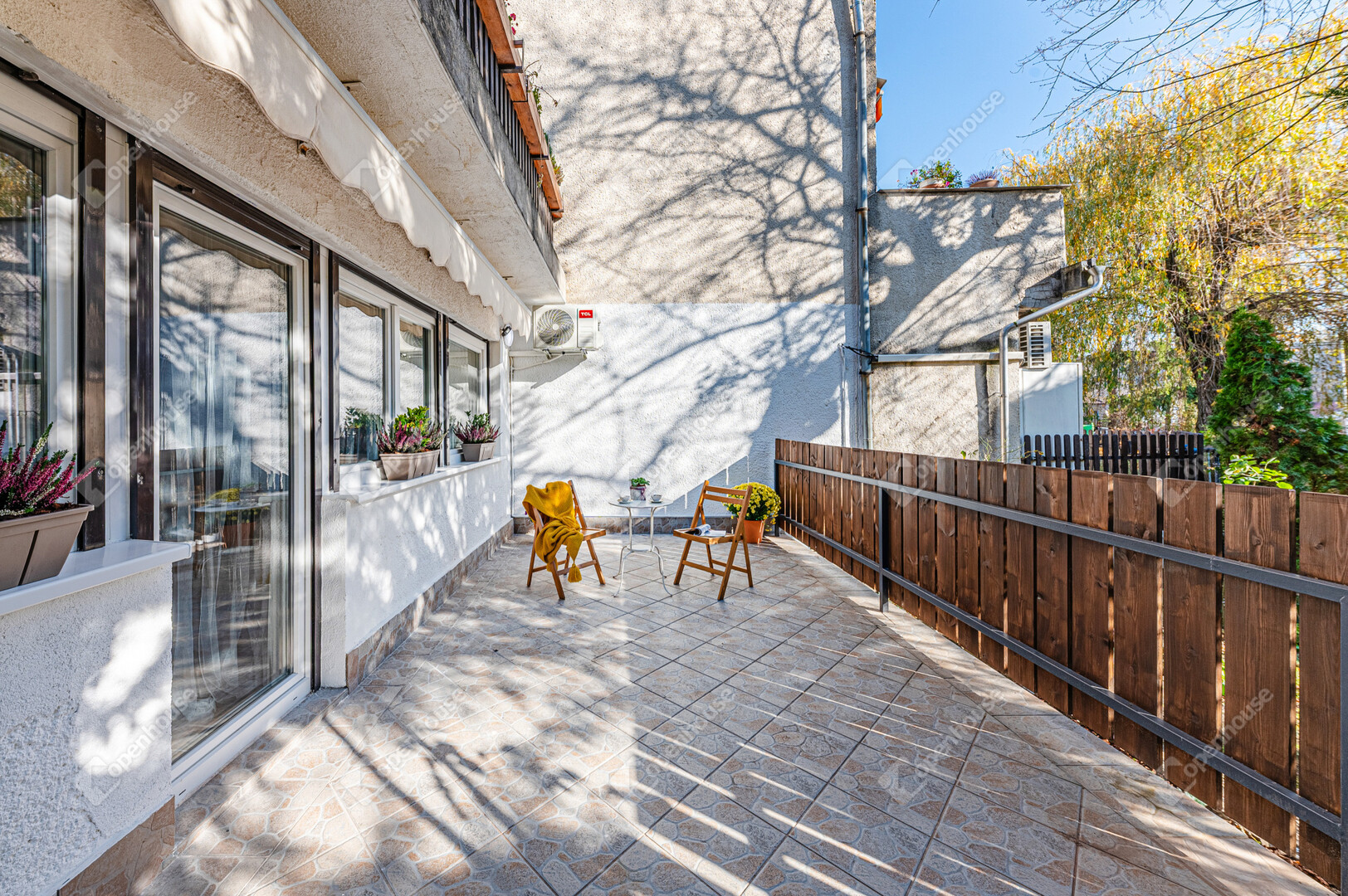 A nappali és a 20 m²-es terasz között szinte eltűnik a határ. A kint és bent összeolvad, és te egyszerre vagy része a lakásnak és a kertnek.