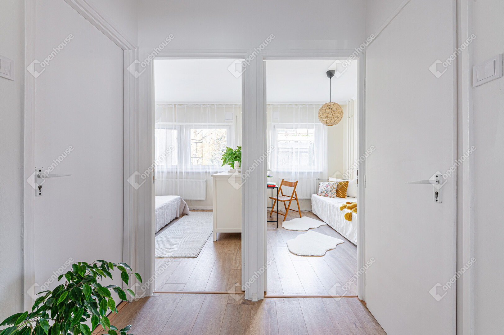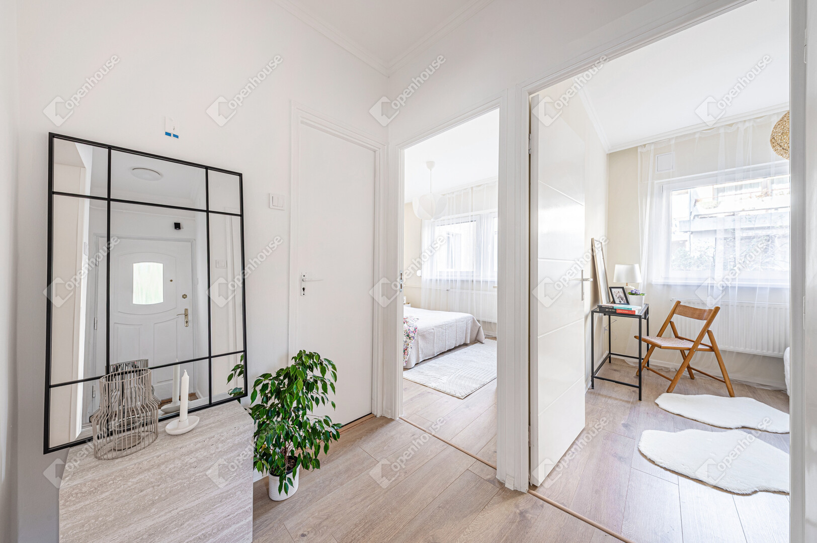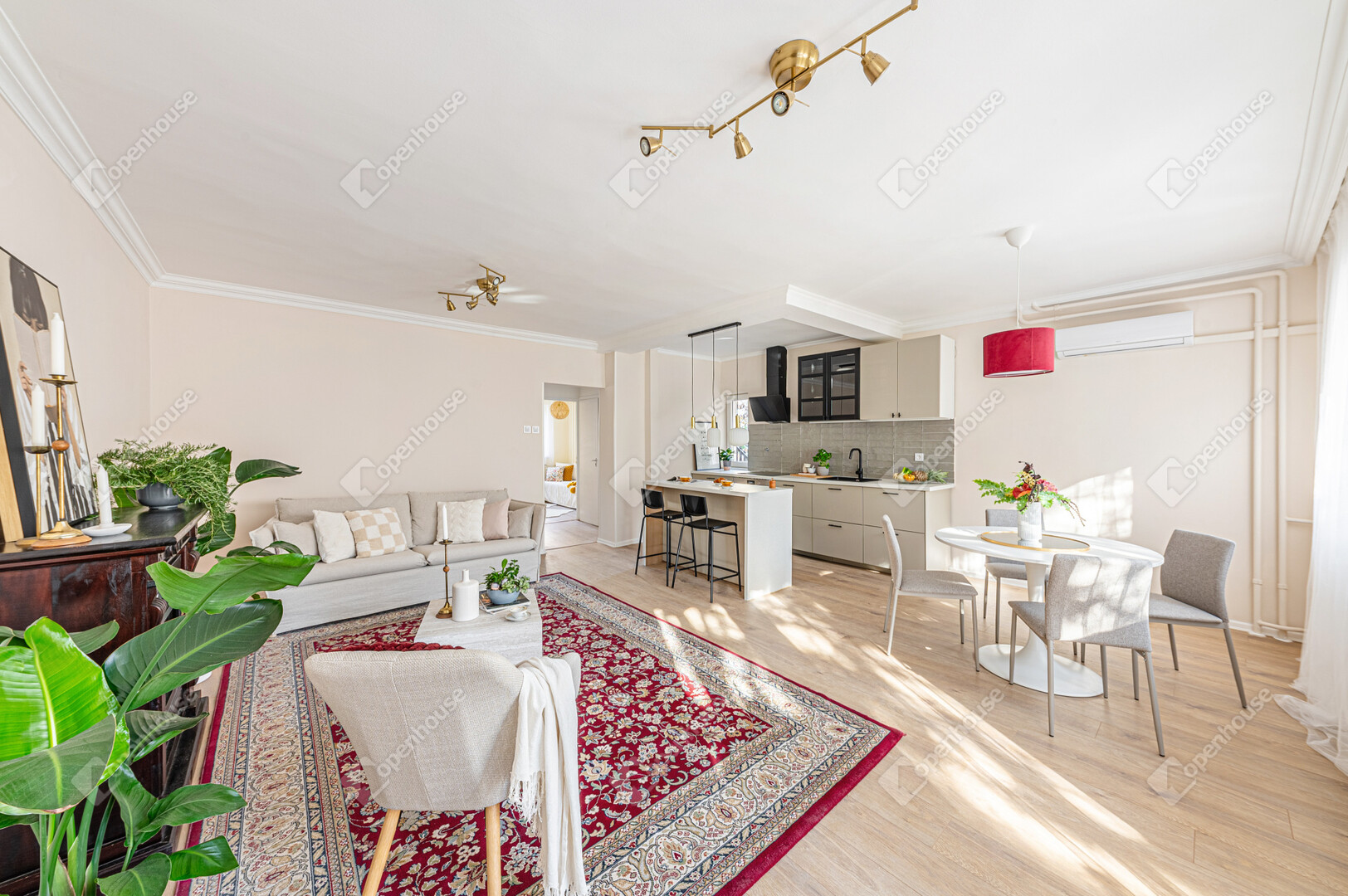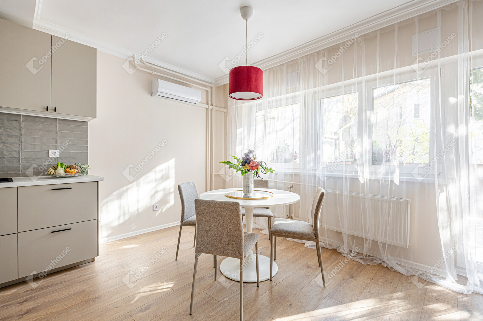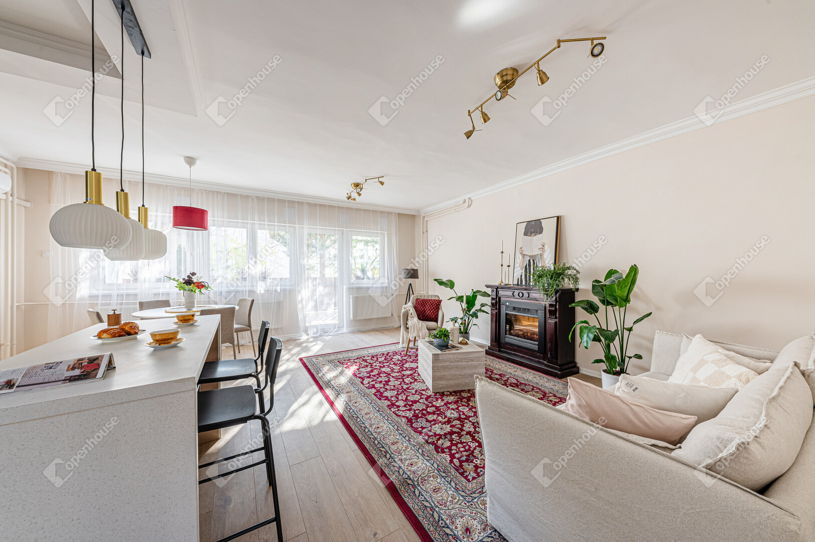 Amerikai konyhás, napfényes nappali, 2 külön nyíló hálószoba