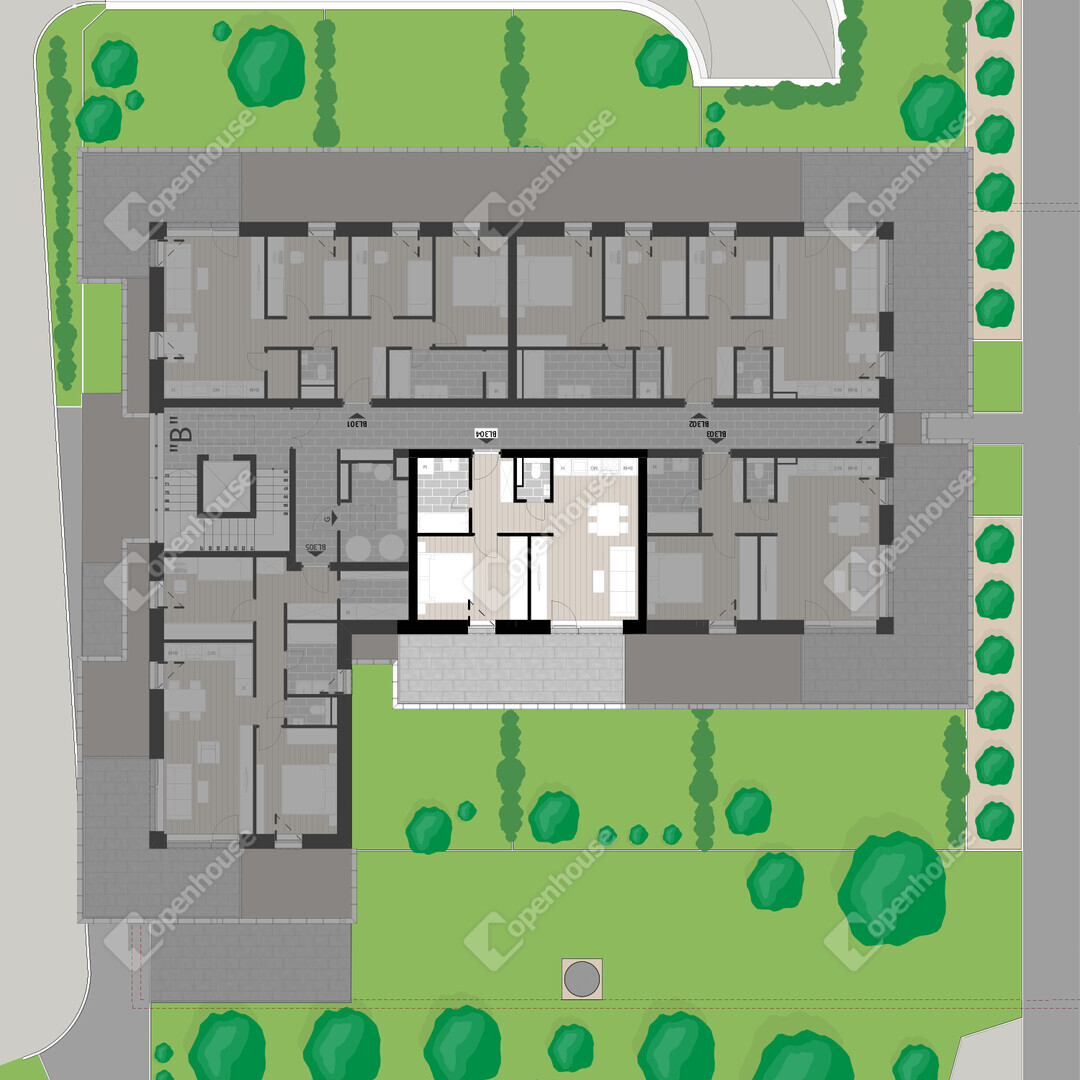 BL304 lakás: 3. emeleti 44.79 m2 alapterületű, 1 szoba nappali elrendezésű, 19,9 m2 erkéllyel.