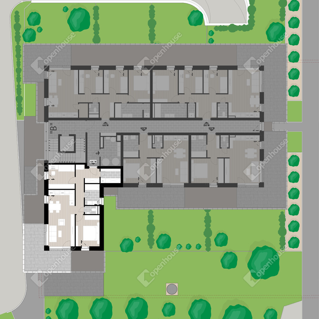 BL305 lakás: 3. emeleti 64,09 m2 alapterületű, 2 szoba nappali elrendezésű, 21,71 m2 erkéllyel.