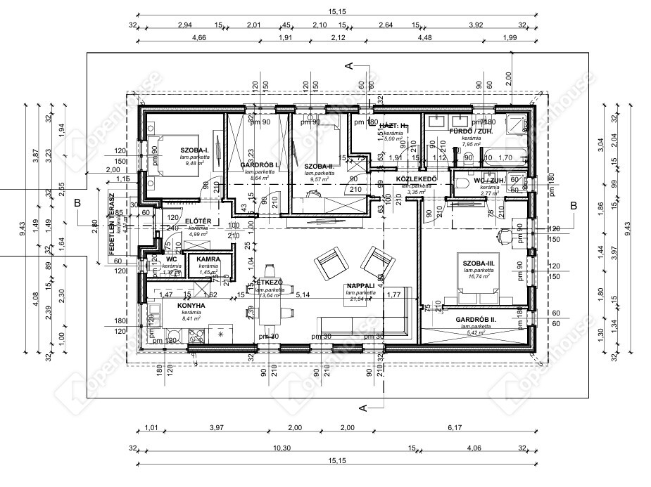 | Háztartási helyiség | 5.00 m2 | Járólap |