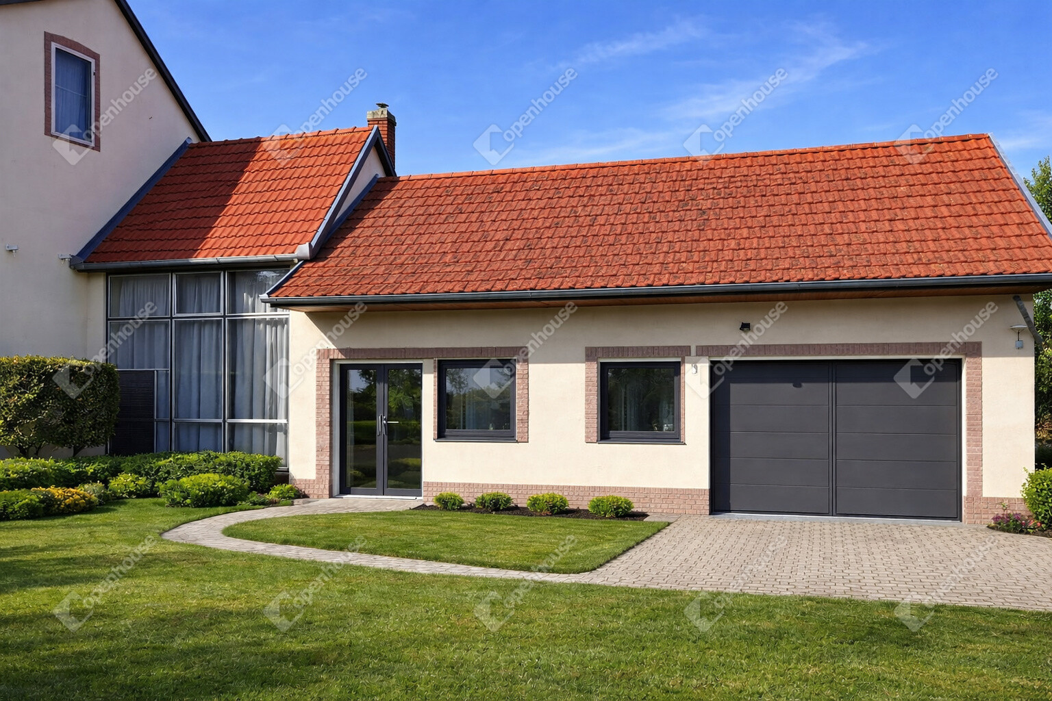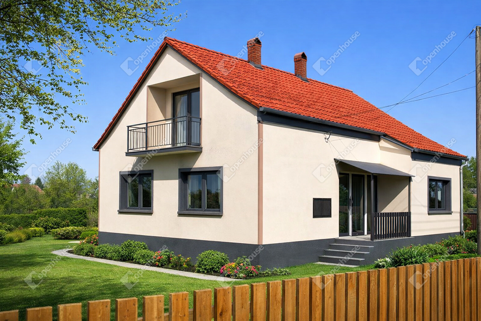 Lakószint (100nm): előtér/lépcsőház, konyha, spájz, teraszkapcsolatos nappali, fürdőszoba, külön WC, 3 külön nyíló hálószoba