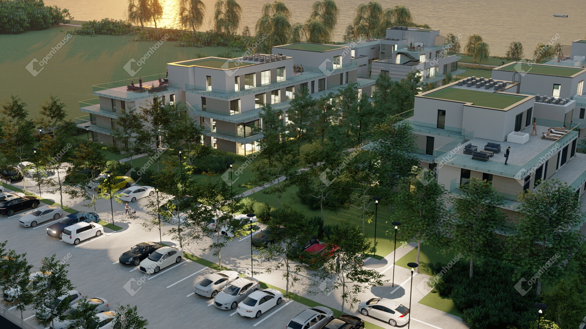 A tó hullámai karnyújtásnyira, a horizont minden nap más árnyalatban festi újra a reggeleket. Itt épül fel egy négy tömbből álló, exkluzív lakópark, ahol a modern építészet és az időtálló érték találkozik.